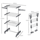 Easy clothes drying, with plenty of just-washed items thanks to this HOMCOM clothes horse. The multi-rack design comes with three middle shelves and two rotating wings: plenty of room for clothing. All levels, plus the legs, can be moved downwards/inwards to ensure it can be compactly stored. Six wheels to move it around easily, this laundry rack comes with two brakes so it stands stationary in place.