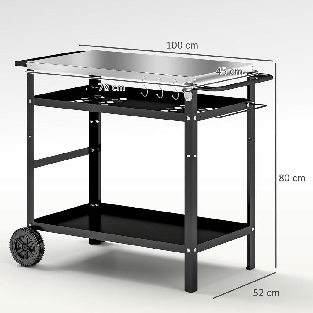 Plan to host some friends? Take entertaining to the next level with an all-inclusive Outsunny pizza oven table. Featuring a stainless steel tabletop, shelves, a seasoning tray and many functional hooks, this BBQ cart can hold all your meals, drinks and seasonings. Easily portable with large wheels, this outdoor BBQ table is excellent for meal prep and serving at picnics, BBQs, or family get-togethers. Get on a roll with Outsunny.