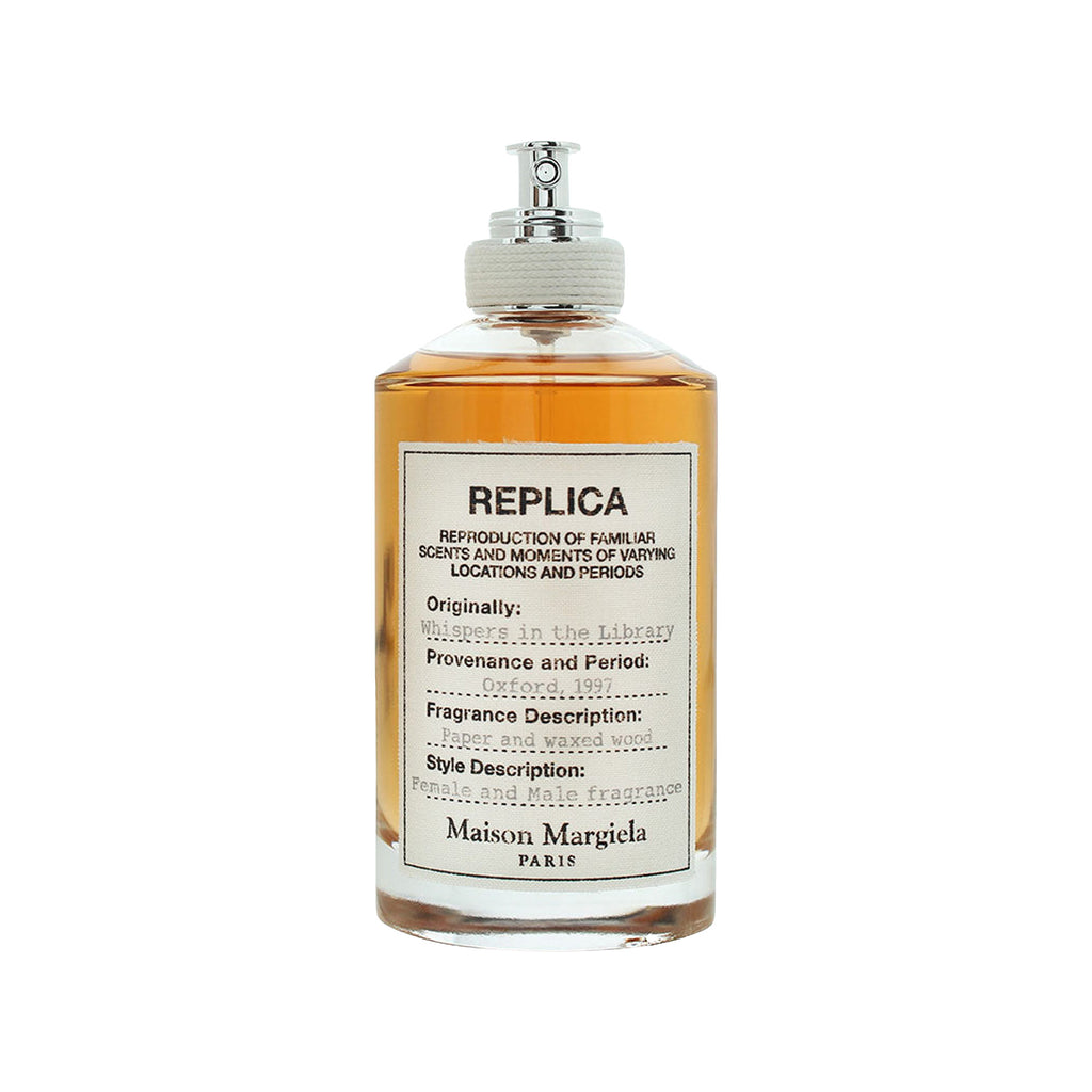 The Maison Margiela Replica Whispers In The Library is an amber woody unisex fragrance, launched in 2019, that captures the comforting and intimate atmosphere of a quiet library filled with old books and wooden shelves. The scent profile of this fragrance is inspired by the cosy and inviting ambiance of a library and includes notes of vanilla, cedar, pepper and woody notes, which give it a warm and comforting aroma, perfect for those who want to capture the intimate essence of a quiet library.