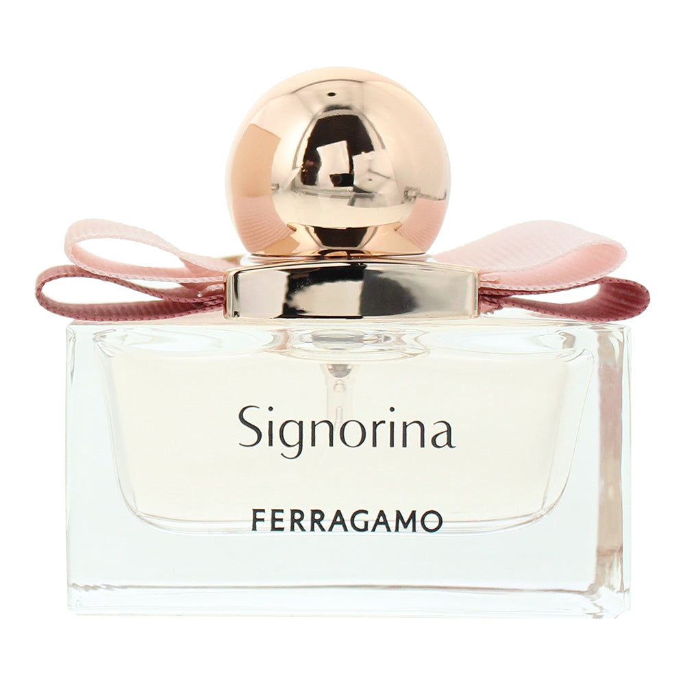 Ideal for women who appreciate a modern and refined scent with a playful twist, Signorina is a charming and expressive fragrance, housed in a classic sleek bottle adorned with a delicate pink bow and topped with a polished gold lid, perfectly capturing its graceful spirit.