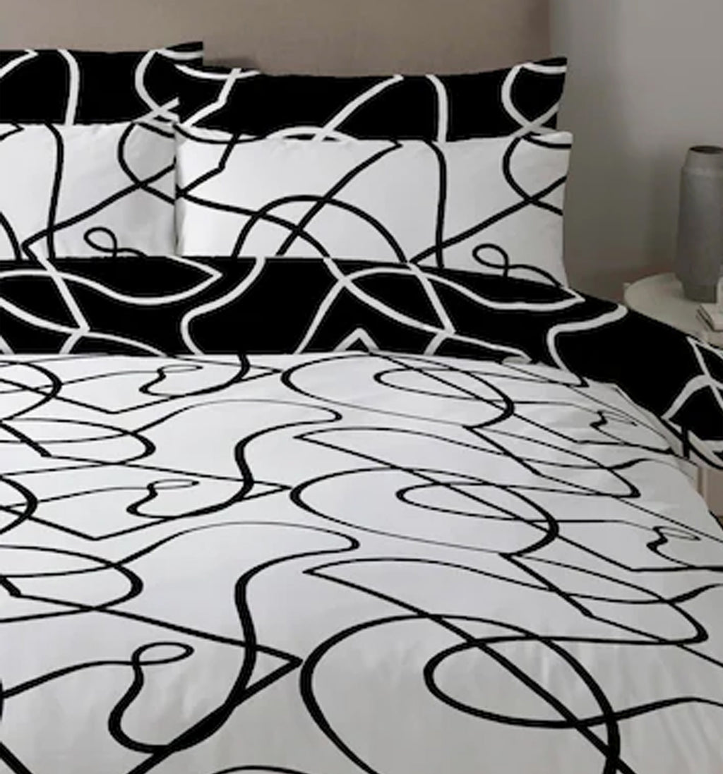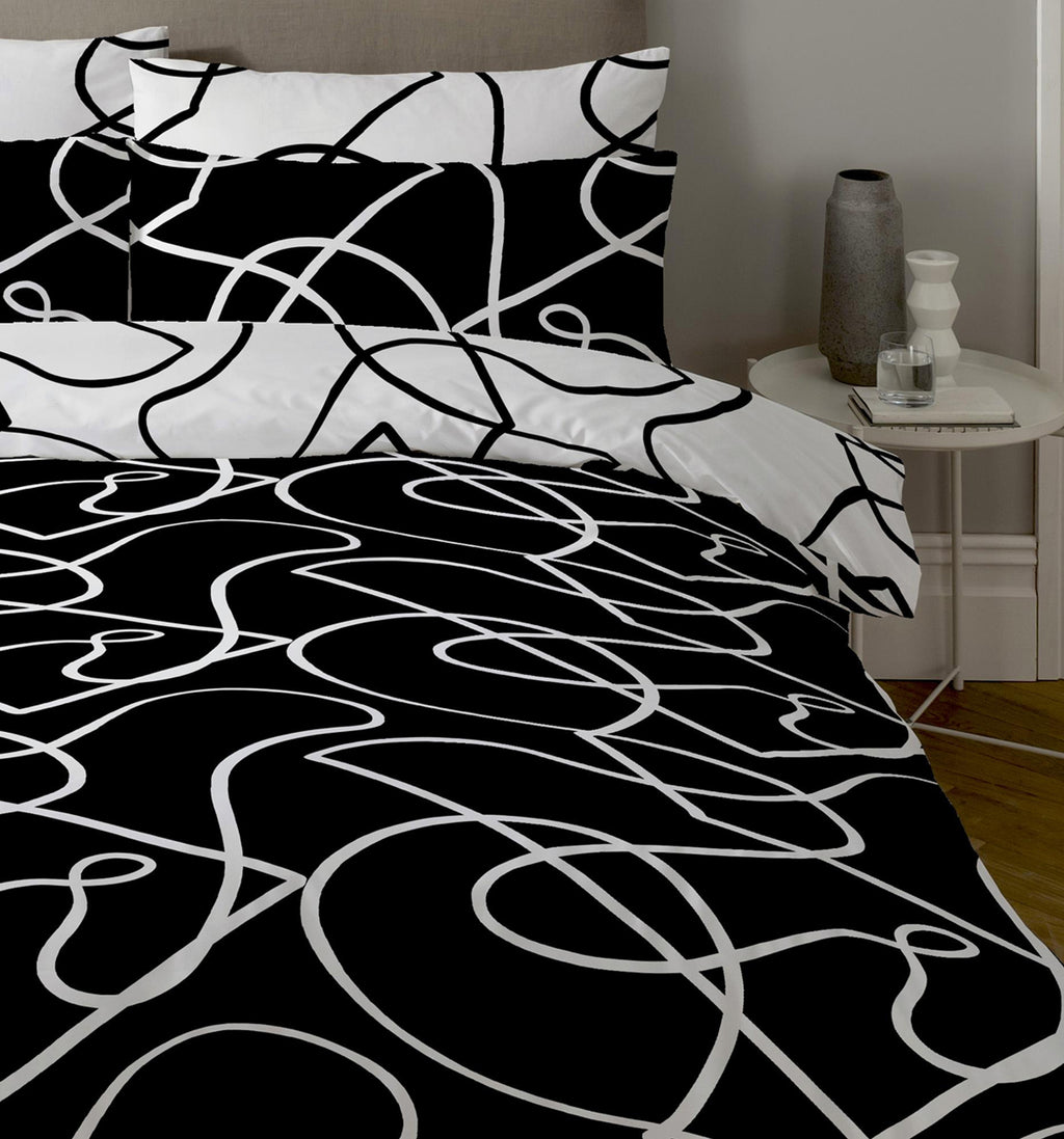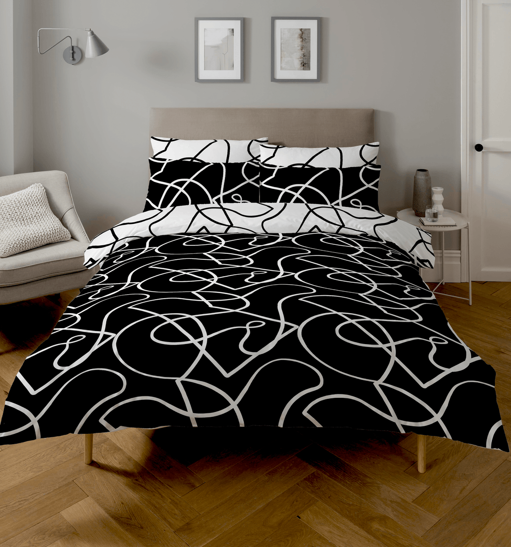 Simple yet sophisticated, the Pablo design's fluid geometric curves are bang on trend and fully reversible. Available in two beautiful colourways all with their own unique look. This striking monotone colourway is perfectly simple and the perfect finishing touch for the minimalist bedroom. Produced using our easy-care polycotton blended fabric, which is ethically sourced using sustainable BCI cotton, is delightfully simple and easy to launder.