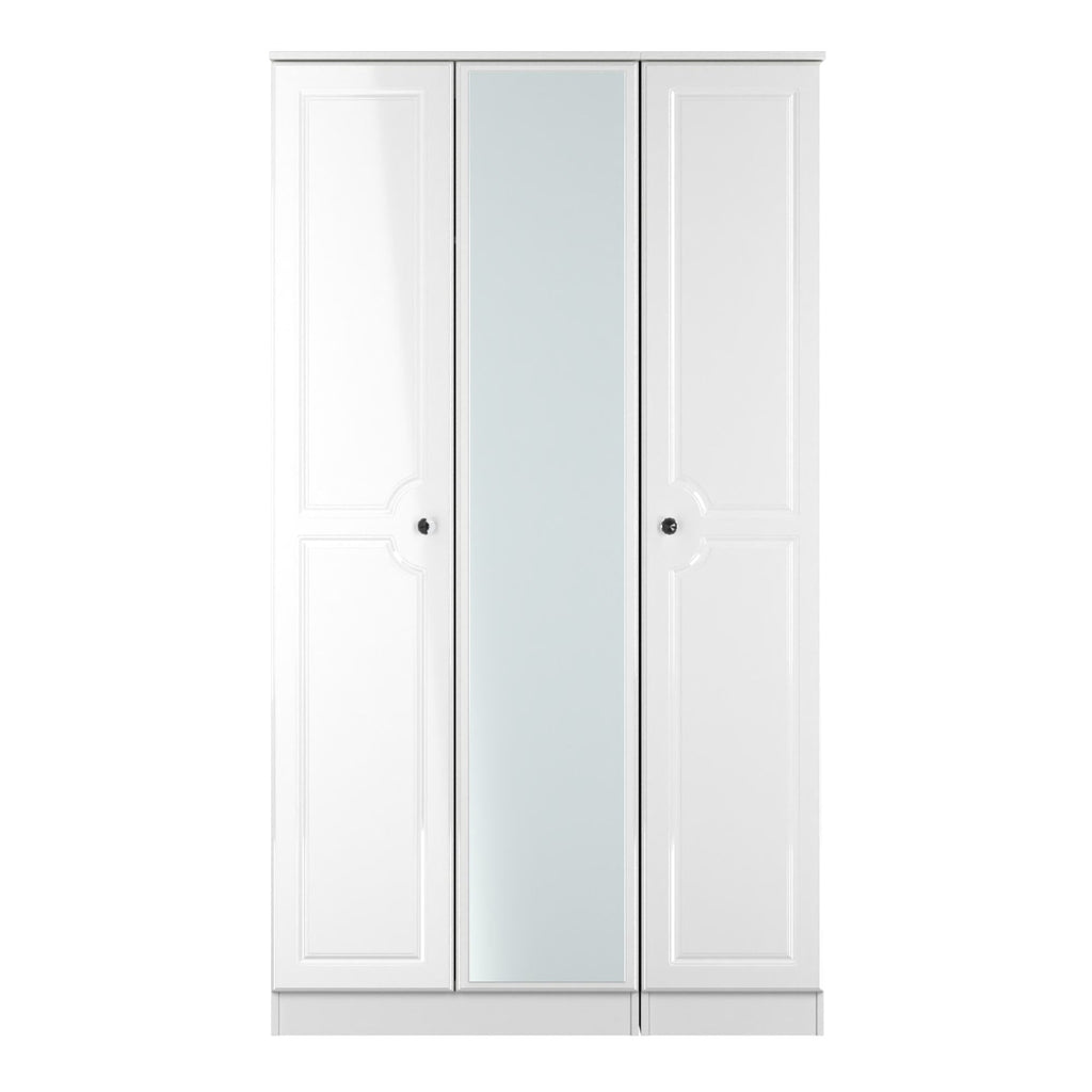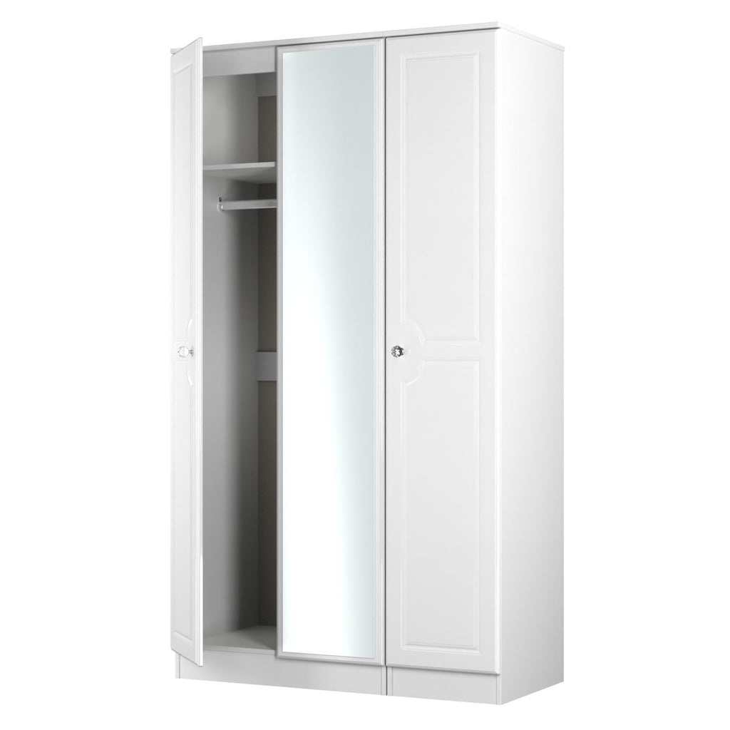 Monroe Ready Assembled Wardrobe with Triple Mirror - White Matt / White