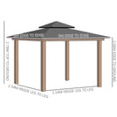 A fancy spot to have parties outdoors, or spend quality time to yourself. This Outsunny 300cm x 300cm hardtop gazebo is made for practically every outdoor space. Comes with a polycarbonate roof - a strong top for extended use, which creates shelter inside. A powder coated metal and aluminium blend frame, the structure is strong, with curtains to create privacy whenever you want. Also comes with netting to protect inside from any bugs - so you can enjoy your gatherings in peace.