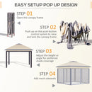 Pop-in, pop-up and pop-out with Outsunny. Outsunny lets you set up for outdoor fun fast. With our screened canopy, you can get ready in no time. Set up is a cinch; simply pop up, cover with the canopy, select a height, and mount to the ground. The mesh sidewalls of our instant canopy keep out unwanted guests with wings, and the netting on the ceiling gives you extra protection from above. Complete with a carrying bag, camping, picnics, or parties on the porch are easy.