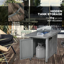 • 50,000 BTU burner, gas tank not included. Magnetic door on tank compartment