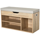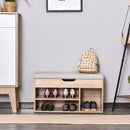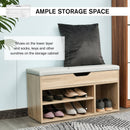 Specification: - Brand: HOMCOM. - Colour: Grey and oak tone. - Materials: MDF, PU plastic and sponge. - Dimensions: 80W x 30D x 43Hcm. Top compartment: 76.8W x 26.8D x 8.5H cm. Right compartment: 25W x 28.5D x 27.5H cm. Left compartment: 50W x 28D x 13H cm. - Weight capacity: Whole: 80kg. Top compartment: 10kg. Shelf: 5kg. - Flat pack: Yes. - Custom label: 837-039ND. OPEN STORAGE: Keeps shoes within easy reach, features three compartments for organisation. Small concealed top area, with a cut-out handle for safe opening and closing. Left hand shelf can be moved up/down. MDF FRAME: Durable and reliable structure for everyday use. Finished in an oak wood effect for beauty. Bottom plastic feet protect floor. Side handles for easy movement. PADDED TOP: Filled with foam, it ensures you'll be sitting comfortably - perfect for when putting shoes on. DIMENSIONS: 43H x 80W x 30Dcm. Right compartment: 27.5H x 25W x 28.5Dcm. Left compartment: 13H x 50W x 28Dcm. MAXIMUM WEIGHT 120KG. ASSEMBLY REQUIRED.