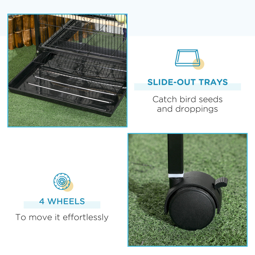 This PawHut cage provides birds with the space they need. There are two sections, both with two perches, so pets can stand, whilst flapping and extending their wings. For more room, remove the tray from the top section to make a big cage. There are multiple containers, which are easy to access, ensuring they have food and water. Four wheels for easy movement, whilst the large door lets you access and maintain the cage. Finished with two pull-out trays to remove dirt, keeping their home clean.