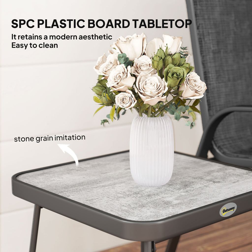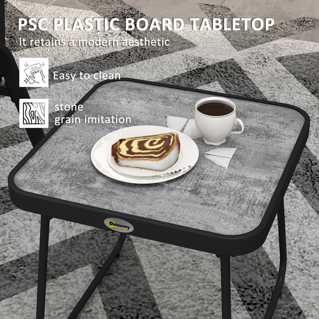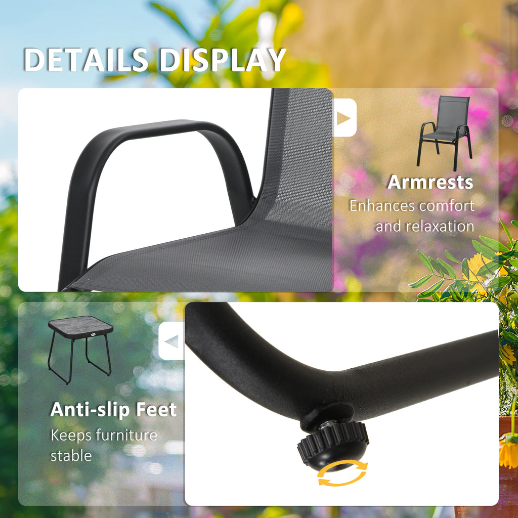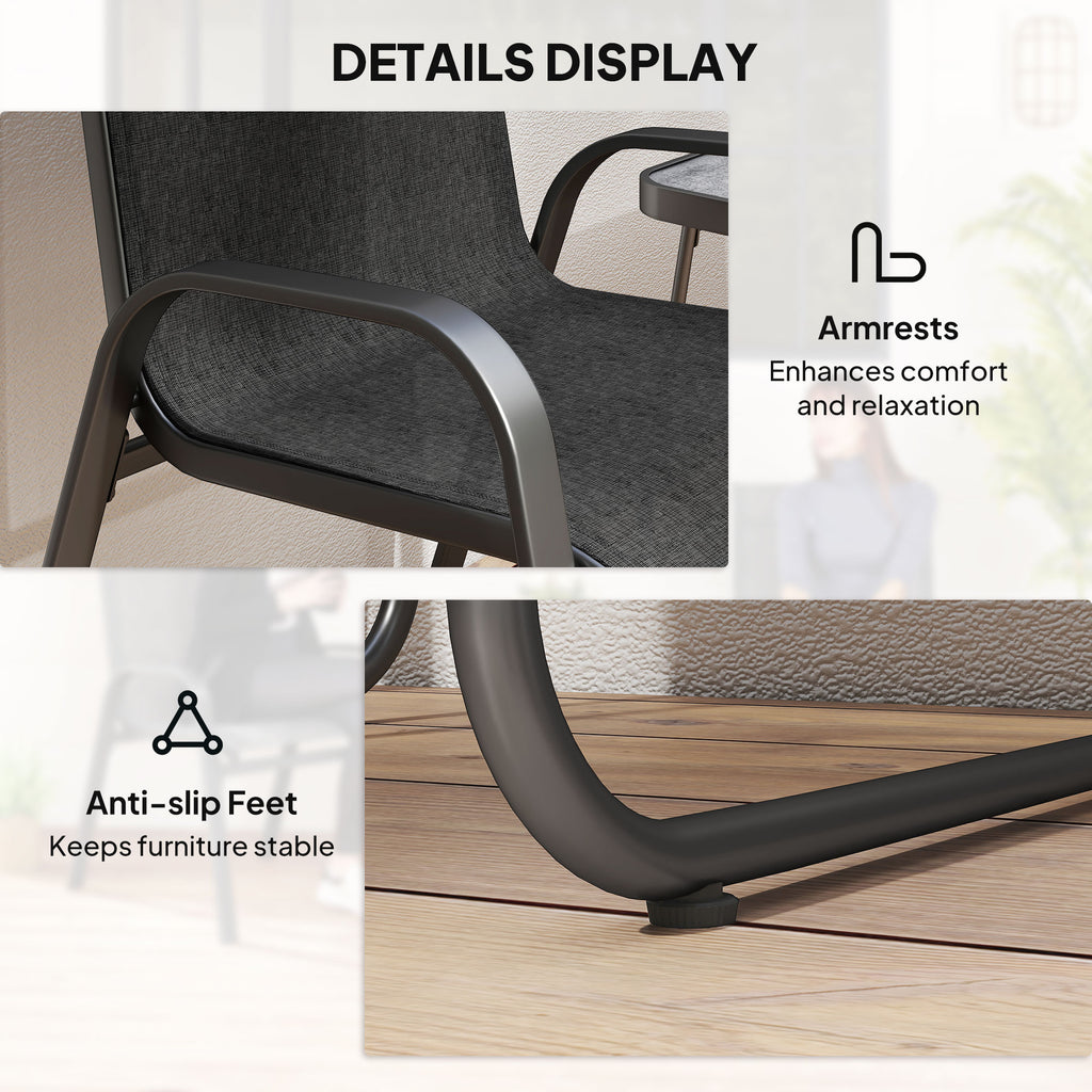 This Outsunny three-piece set is great for relaxing with company outdoors. Comes with two chairs and table. Each piece has a steel frame: strong and supportive. A great addition for all outdoor spaces.