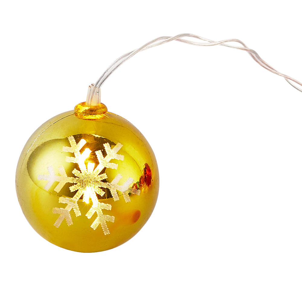 Add a festive sparkle to your home this Christmas with this beautiful bauble light string. Featuring a mix of glittering red, green, and gold baubles, it brings instant holiday cheer. The 3-metre string holds 20 LED lights, ideal for decorating your tree, mantelpiece, or staircase. Battery-powered for effortless placement, you can create a warm, festive glow without worrying about trailing cords.