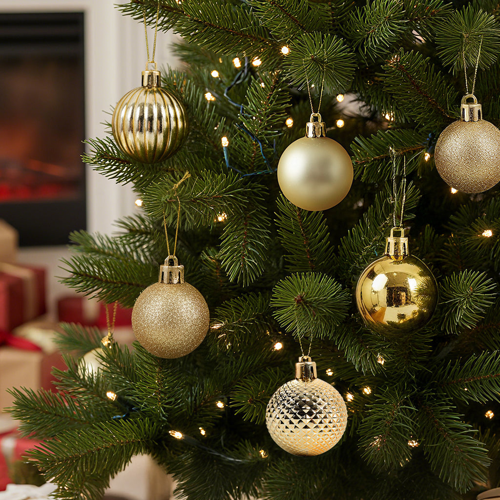 Bring festive charm to your home this winter with these Christmas baubles. Available in two colours and six elegant designs, this deluxe set adds a stylish sparkle to any tree. Though they glisten like real glass, each bauble is crafted from durable plastic, so there;'s no need to worry about breakages. Lightweight and easy to hang, even children can join in the fun of decorating. With these beautiful baubles, your Christmas tree will truly stand out this festive season.