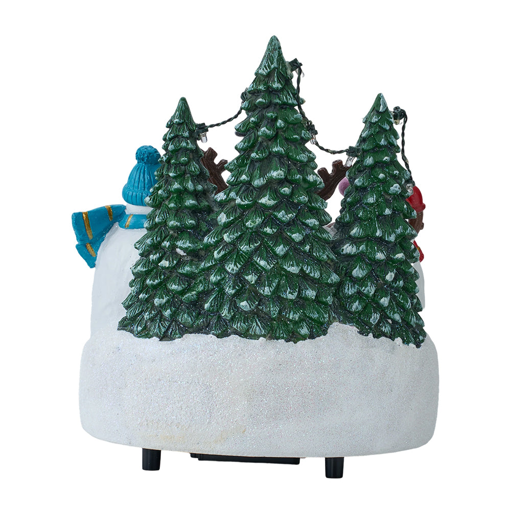 This delightful Christmas ornament is beautifully crafted in vibrant colours, instantly infusing any space with festive spirit. The enchanting scene features three cheerful snowmen standing side by side, like joyful heralds of winter. With a simple flick of a switch, the tiny sleds beneath them spin merrily while soft, dreamy lights glow all around. The piece also plays gentle Christmas melodies, adding warmth and charm to your celebrations. Perfect as a cosy accent in the living room, a whimsical touch in the bedroom, or a captivating centrepiece for holiday gatherings, it's sure to draw attention and fill your home with seasonal joy.