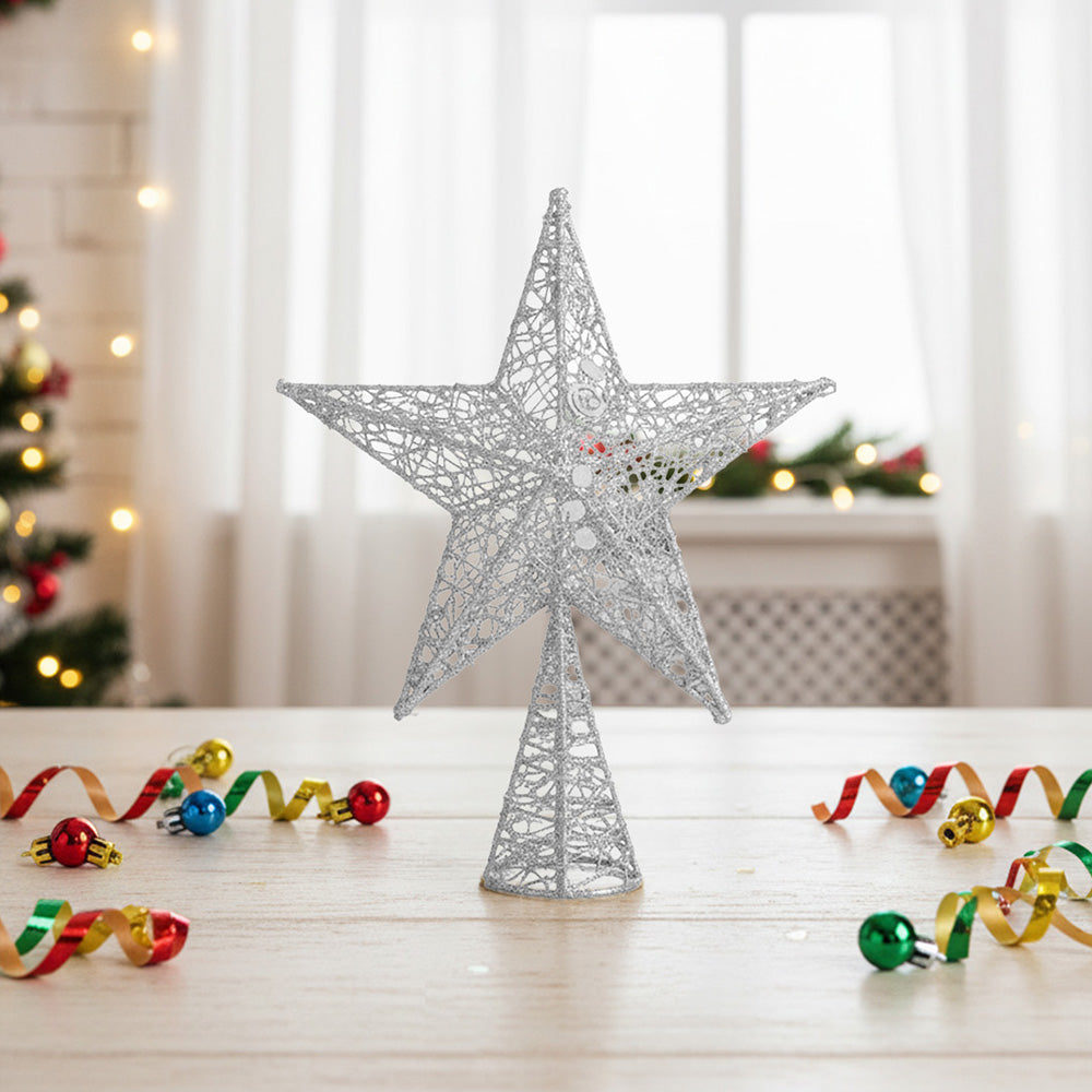 Every Christmas tree deserves a crowning touch, and the right topper can complete the look. Brighten up your festive season with this classic star tree topper. Made from sturdy metal wires and adorned with sequins, it adds a subtle, twinkling sparkle. Its traditional finish complements any Christmas tree, bringing a warm and festive atmosphere to your home.