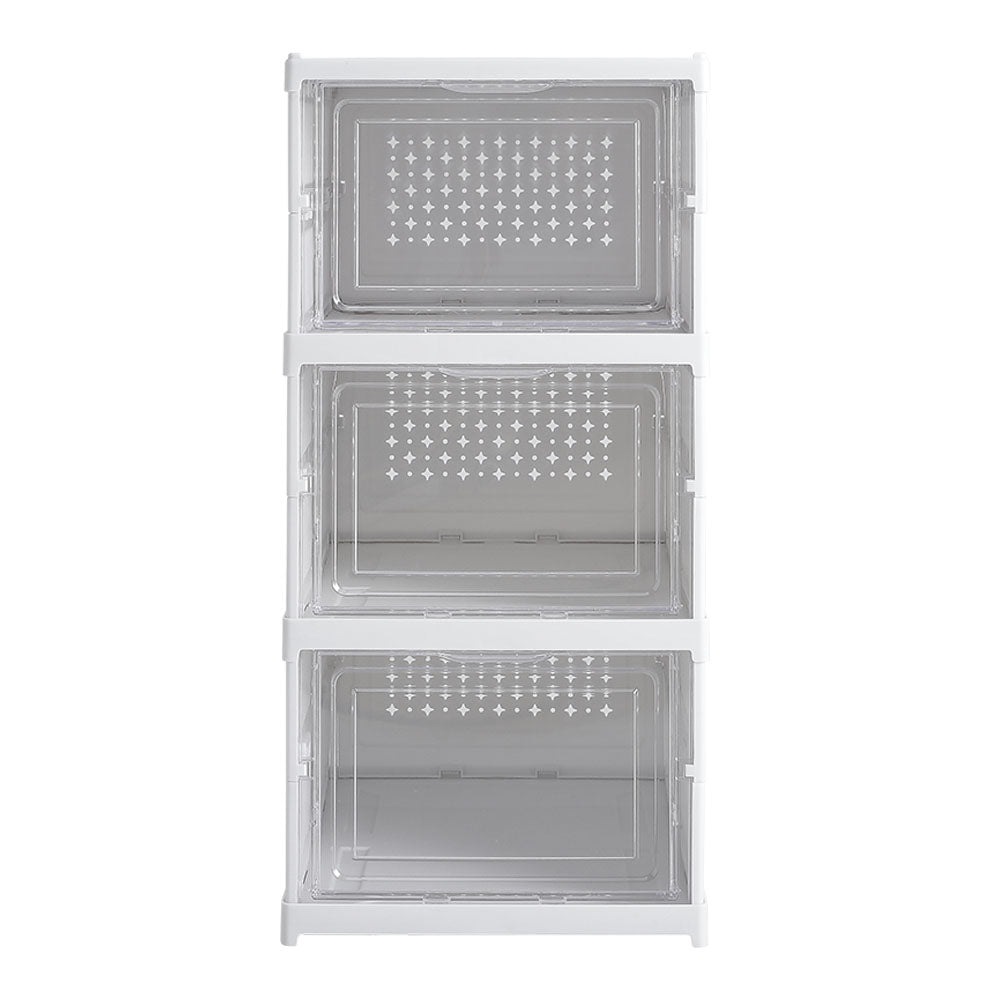 Made from high-quality plastic, this Cottonfy UK shoe box is strong, stable, and built to hold weight well. Its vertical, stackable design saves space, while rear vents allow air to flow, keeping shoes fresh. The clear front lets you see inside without opening it.