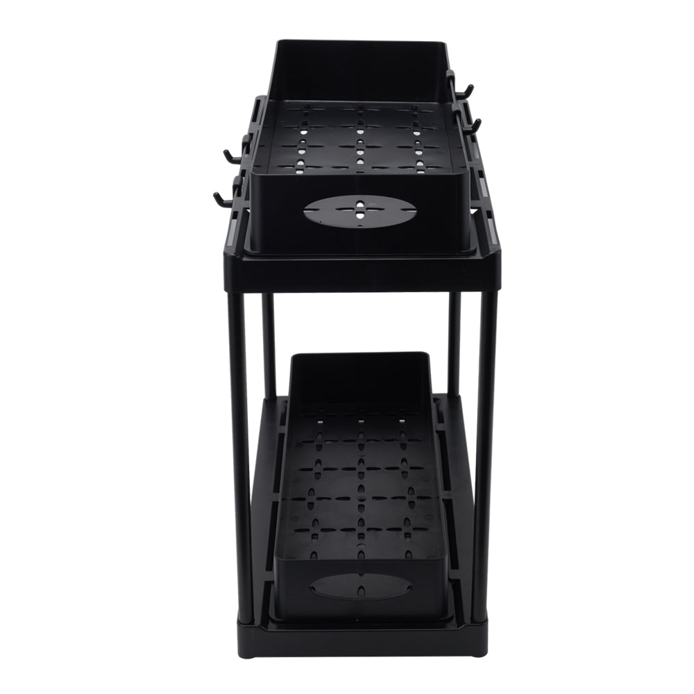 The Compact Two-Tier Sliding Storage Rack provides an efficient way to maximise your under-sink space. Its two sliding baskets allow easy organisation of cleaning products, toiletries, or kitchen essentials, while the smooth gliding mechanism ensures effortless access. Constructed from durable ABS, it offers stability and long-lasting use. The tool-free installation makes setup quick and simple, and its compact design fits seamlessly into kitchens, bathrooms, or utility rooms. Keep your cabinet tidy and clutter-free with this practical storage solution.