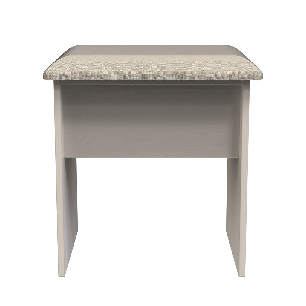 (Dimensions: H50 x W48 x D37cm) A small vanity stool. A light simple, yet sturdy design, with a soft cushioned seat. Makes an idea companion to a desk or vanity. Wood grain effect, panelled design, recessed fronts and chrome handles, the York Range is a beautifully elegant collection. With this range you have the freedom to choose from a wide range of furniture configurations, allowing you to create the perfect combination to optimise your storage space. All our furniture is made in the United Kingdom, to the highest quality. It is delivered direct to your location of choice by one of our two man delivery teams, and comes fully assembled (although legs may be removed to prevent damage in transit).