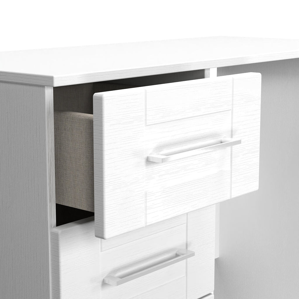 Made in the UK; Scratch Resistant Finish; Ready Assembled; Elegant Design; Metal Pull Bar Handles; Does not have legs; Smooth Metal Drawer Runners; Linen Effect Drawer Linings