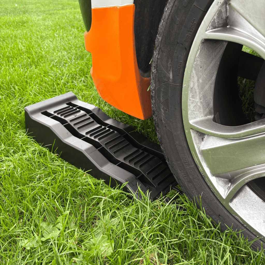 Keep your caravan, campervan, or motorhome perfectly level on uneven ground with the OLPRO Level Ramp & Chock Set. Designed for stability, safety, and ease of use, this essential kit helps you achieve a comfortable, stable setup wherever you park — ideal for campsites, driveways, or festival fields. Built from durable PP plastic, the set includes two Level Up Wedges, two Chock Levels, and two Anti-Slip Plates, providing a secure and stable foundation for your vehicle. With a load capacity of up to 5 tonnes per axle and three height levels (4cm, 7cm, 10cm), you can easily adjust and stabilise your vehicle with confidence. The OLPRO Level Ramp & Chock Set takes the stress out of parking on uneven surfaces. Easy to use and built for long-lasting reliability, it ensures your vehicle stays level and secure — so you can enjoy a stable setup, better drainage, and a more comfortable night’s sleep while camping. Key Features of the OLPRO Level Ramp & Chock Set Complete Levelling Kit – Includes wedges, chocks, and anti-slip plates for maximum stability Strong Load Capacity – Supports up to 5 tonnes per axle (2.5t per piece) Three Height Levels – Adjustable to 4cm, 7cm, or 10cm for precision levelling Anti-Slip Plates Included – Prevent unwanted movement on smooth or wet surfaces Durable & Weather-Resistant – Made from heavy-duty PP material built to last Compact & Easy to Store – Lightweight design ideal for travel and quick setup Ideal for Campers & Caravanners – Perfect for levelling on uneven pitches or grassy terrain Set Includes: 2x Level Up Wedges: 57 x 19.5 x 13 cm 2x Chock Levels: 13 x 8.5 x 9.5 cm 2x Anti-Slip Plates: 22.3 x 13.6 x 0.3 cm Made from/with: Material: Durable PP (Polypropylene) Plastic
