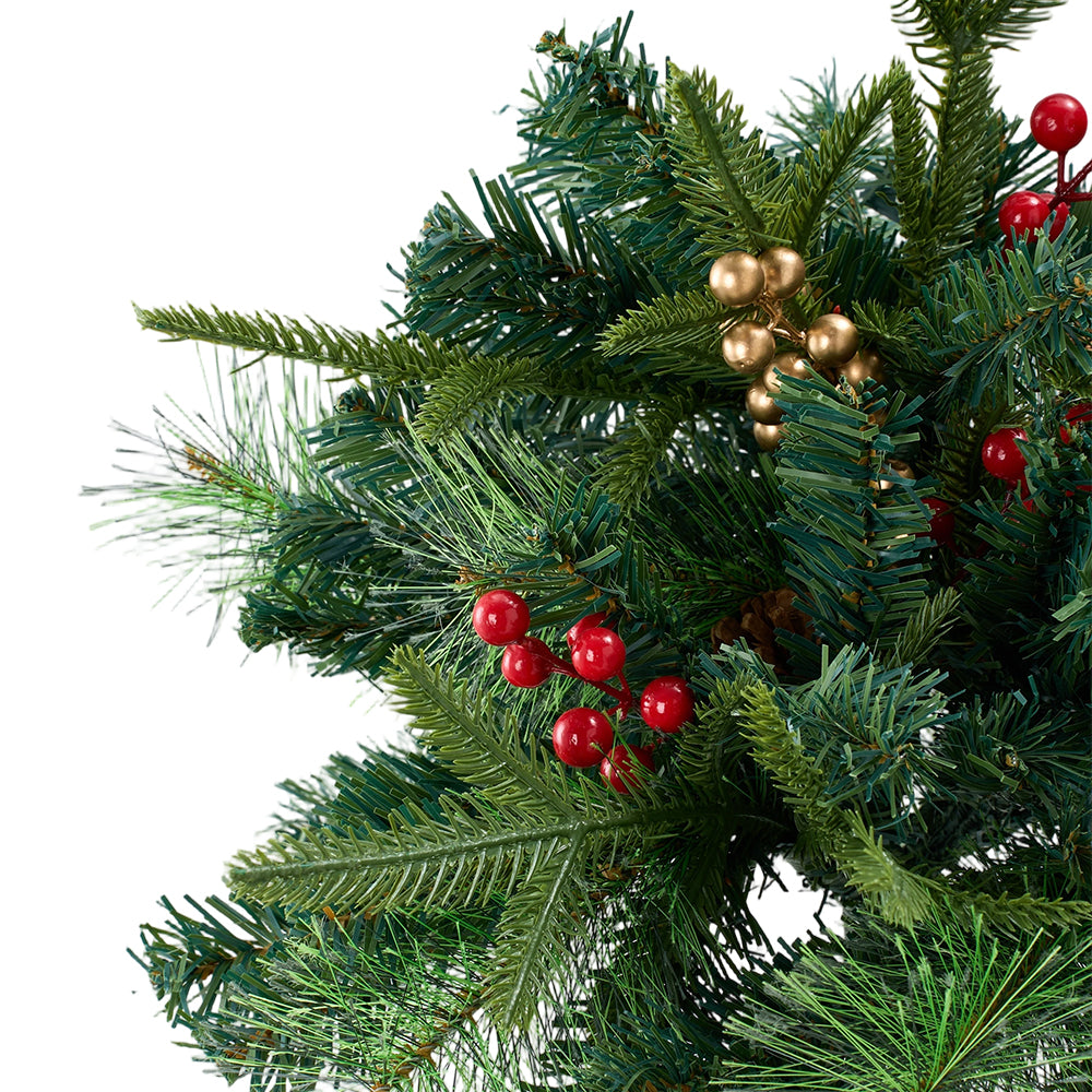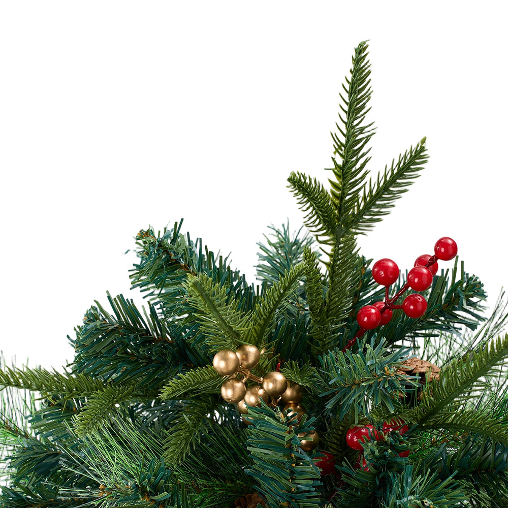 Create an enchanting festive focal point with this artificial Christmas tree urn filler. Designed to mimic natural pine branches, it features a lush, layered silhouette with lifelike texture. Vibrant berry clusters and pinecones are artfully interspersed throughout, adding cheerful colour and woodland charm. Built-in string lights offer eight lighting modes, casting a warm glow and creating a cosy festive atmosphere for courtyards, porches, flower beds, or indoor spaces. Available as a single item or a 2-piece set, it provides flexible decorating options for any setting.