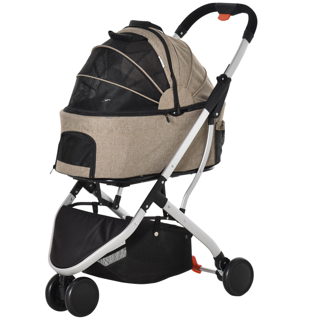 In need of a great dog buggy to take your furry little friend along with you? Then check out this PawHut dog stroller! This uniquely designed cat stroller is perfect for the pet owner on the go: the pet pram has an interesting design that can be converted as a carrying bag. Furthermore, small bags and a basket are included which allow you to put your and your pet supplies, and the easy roll wheels mean it can go anywhere you can.