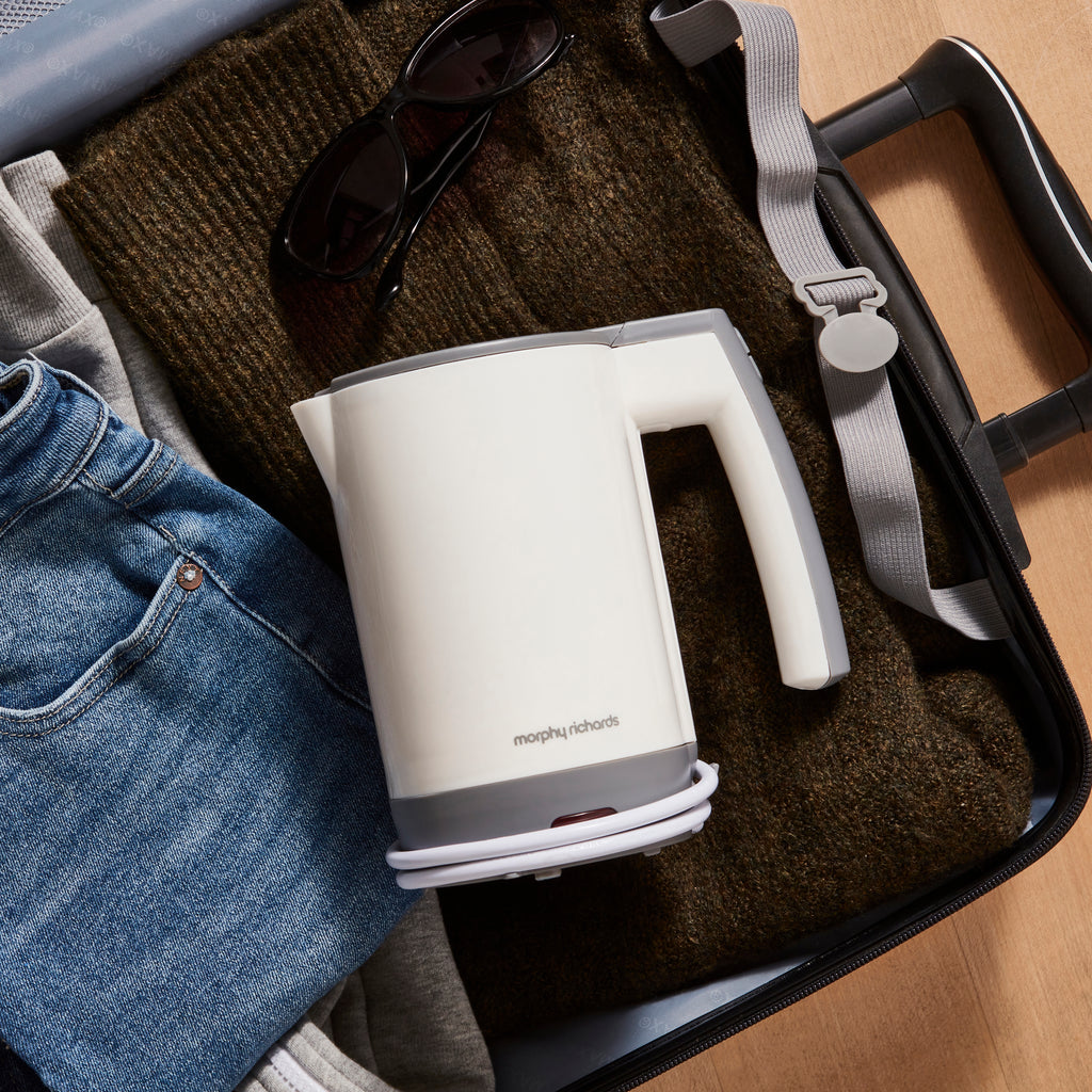 Our compact travel kettle is the ideal solution for small kitchen set-ups, caravans, camping trips, travelling, guest bedrooms and more! Not to mention, with its compact 0.5L water capacity its lightweight design also makes this kettle a great choice for those with arthritis or similar ailments. Coupled with two tea cups, this small electric kettle provides just the right amount of water for a quick cup of tea or coffee, without taking up too much space. Functionality and safety are paramount here at Morphy Richards, so we are pleased to confirm that this jug kettle is constructed with top-tier features like auto-switch off at boil and boil-dry protection, while the hinged lid makes filling and cleaning a breeze. So, whether you're setting up a small kitchen, looking for a small bedroom kettle for a guest room, or need a reliable travel companion, this mini kettle delivers on both functionality and portability.