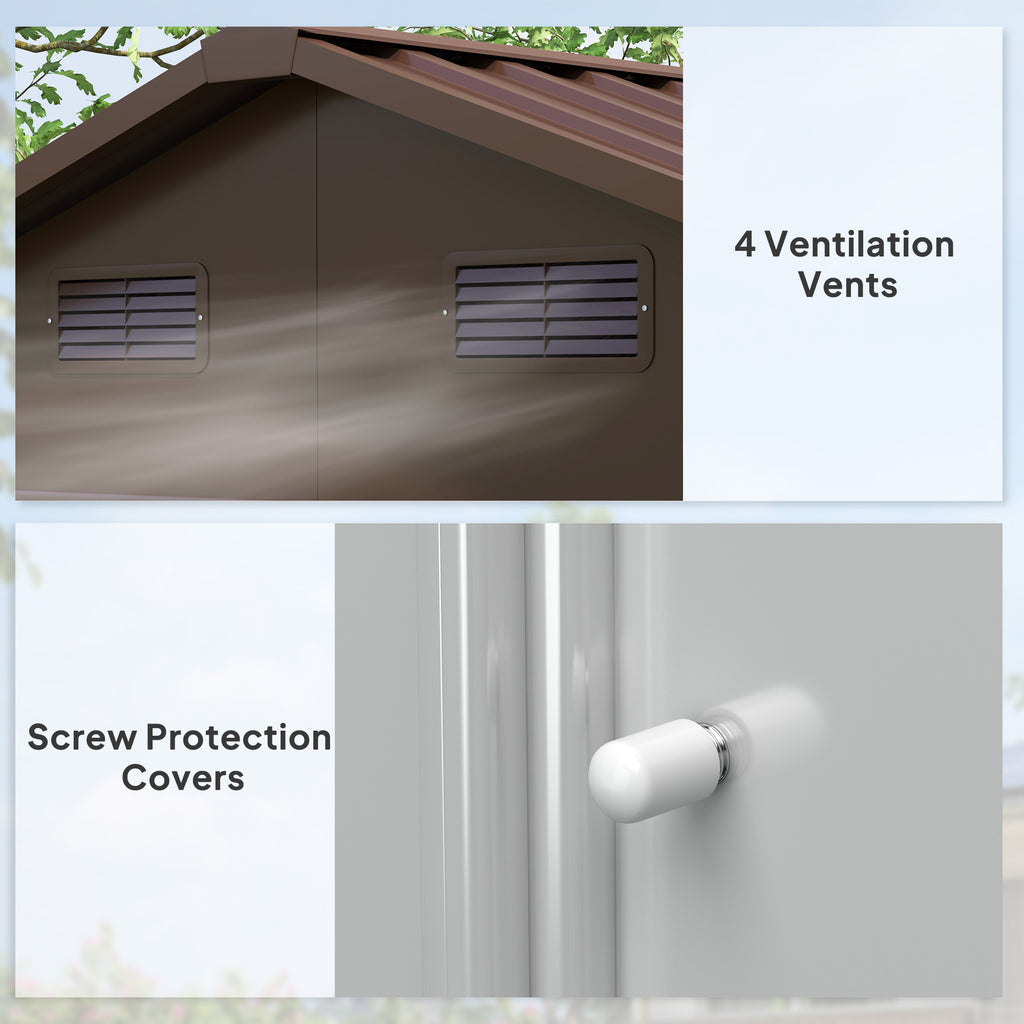 This lean to shed from Outsunny is a stylish solution to keep your garden and outdoors tidy and organized. For every season there are various garden tools that must be stored properly. Our outdoor storage shed helps you maintain order, whether for tools, gloves, rubber boots, hoses or the like. The garden tool shed is made from sturdy and durable colour-coated steel-plate and Polypropylene components, it has a protective film on metal panels for long term use, and also vents for airflow.