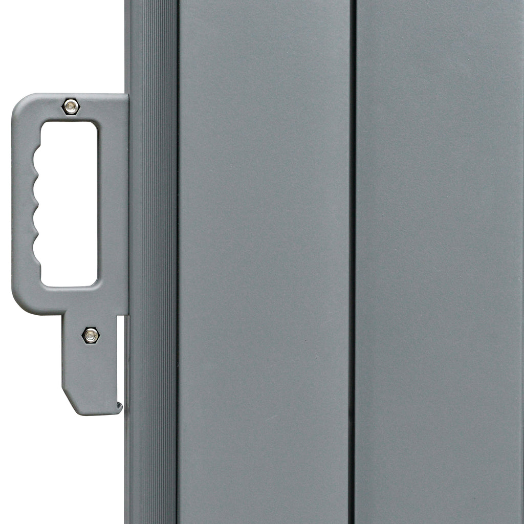 Prevent glaring sun and gusting winds disturbing you outdoors with this retractable screen from Outsunny. The metal base frame is tough to ensure it is a lasting addition in your garden, with it attaching securely to cement or solid wood for quick set up. The double awning is made from polyester with PA coating for weather-resistance, with it pulling out smoothly and fixating in place with the clip lock handle – a simple operation. A great way to enjoyably extend your time out in the garden.• Double canopy for extra protection against glaring sun, light winds and UV
