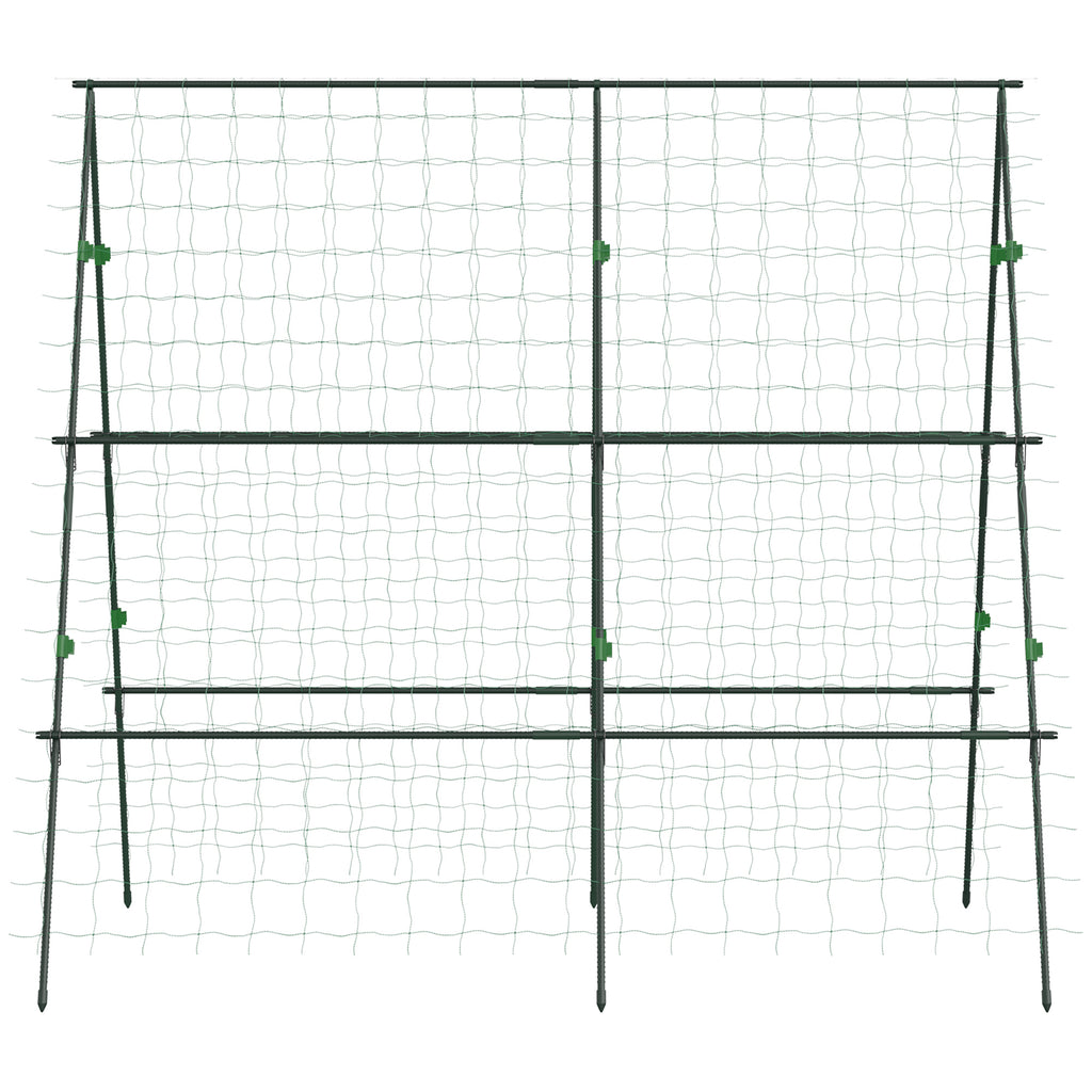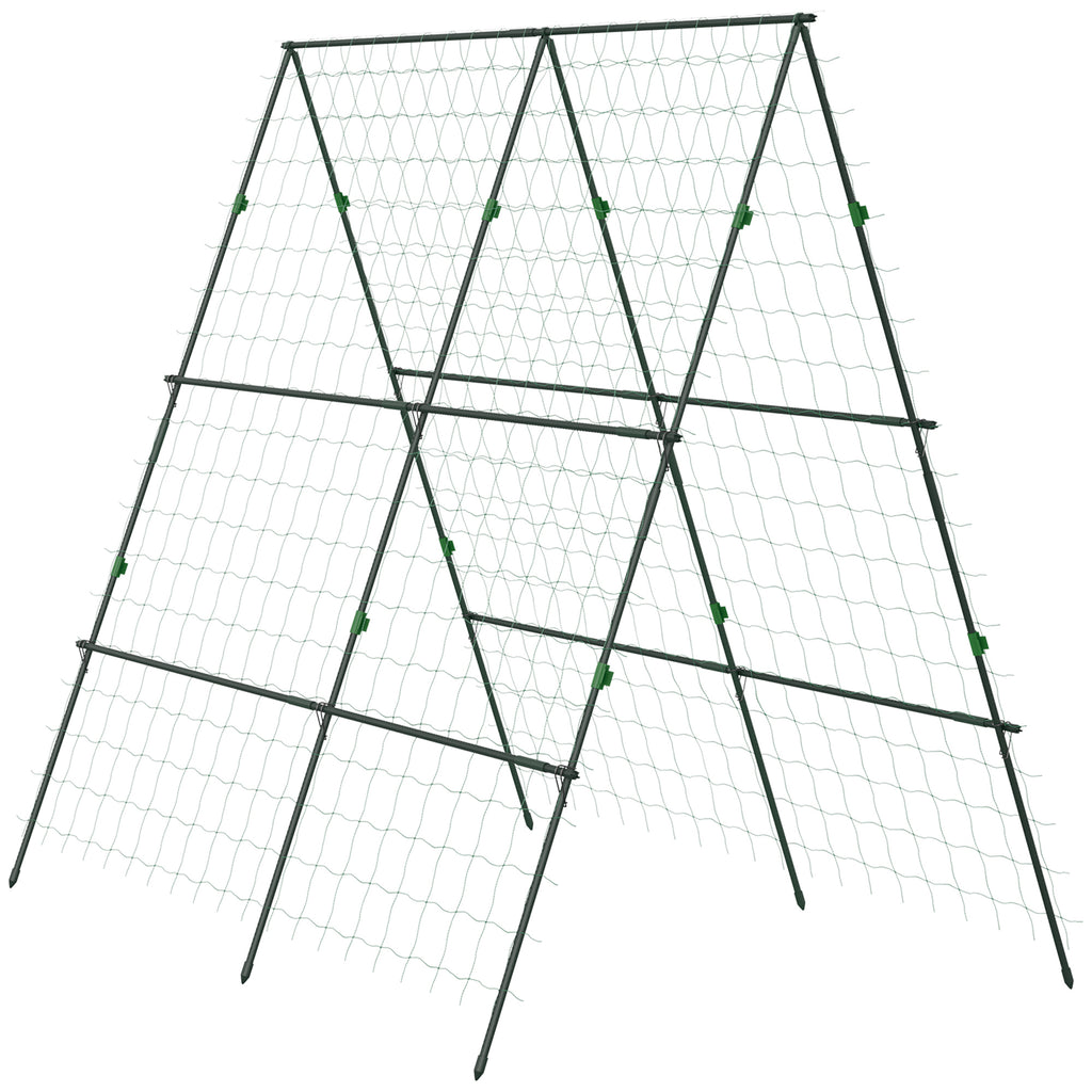 This Outsunny garden trellis for climbing plants, equipped with a practical crop protection net, supports your plants' healthy growth. The two lattice walls offer a great climbing area for vine plants. Its firm, powder-coated steel frame suits outdoor conditions perfectly. Blending seamlessly with the greenery, the cucumber trellis for raised bed remains inconspicuous. It's great for garden use or in conjunction with a raised bed.