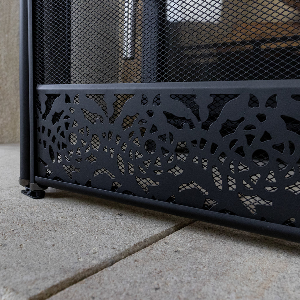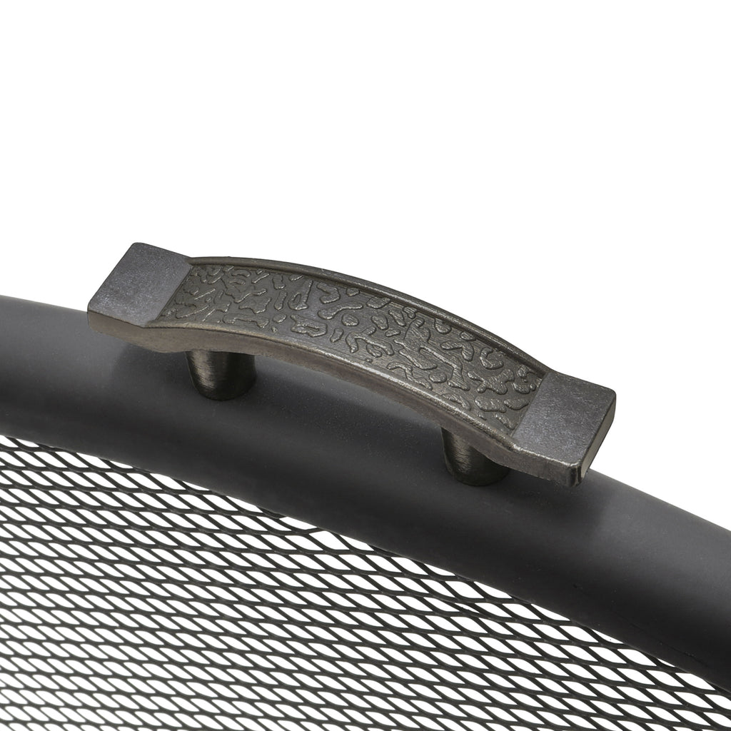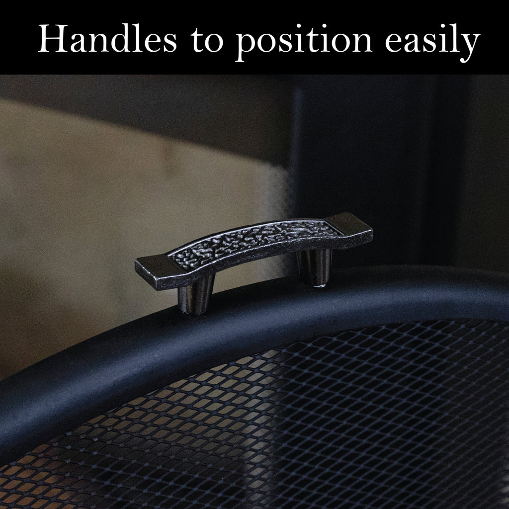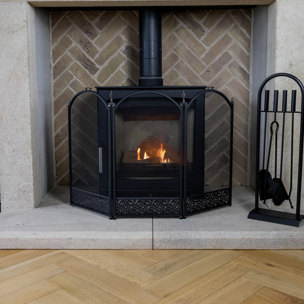 A classic three-fold design features a pretty pattern at the base with two decorative finials, along with its black powder coated finish making it stylish and practical, the perfect accessory for any fireplace