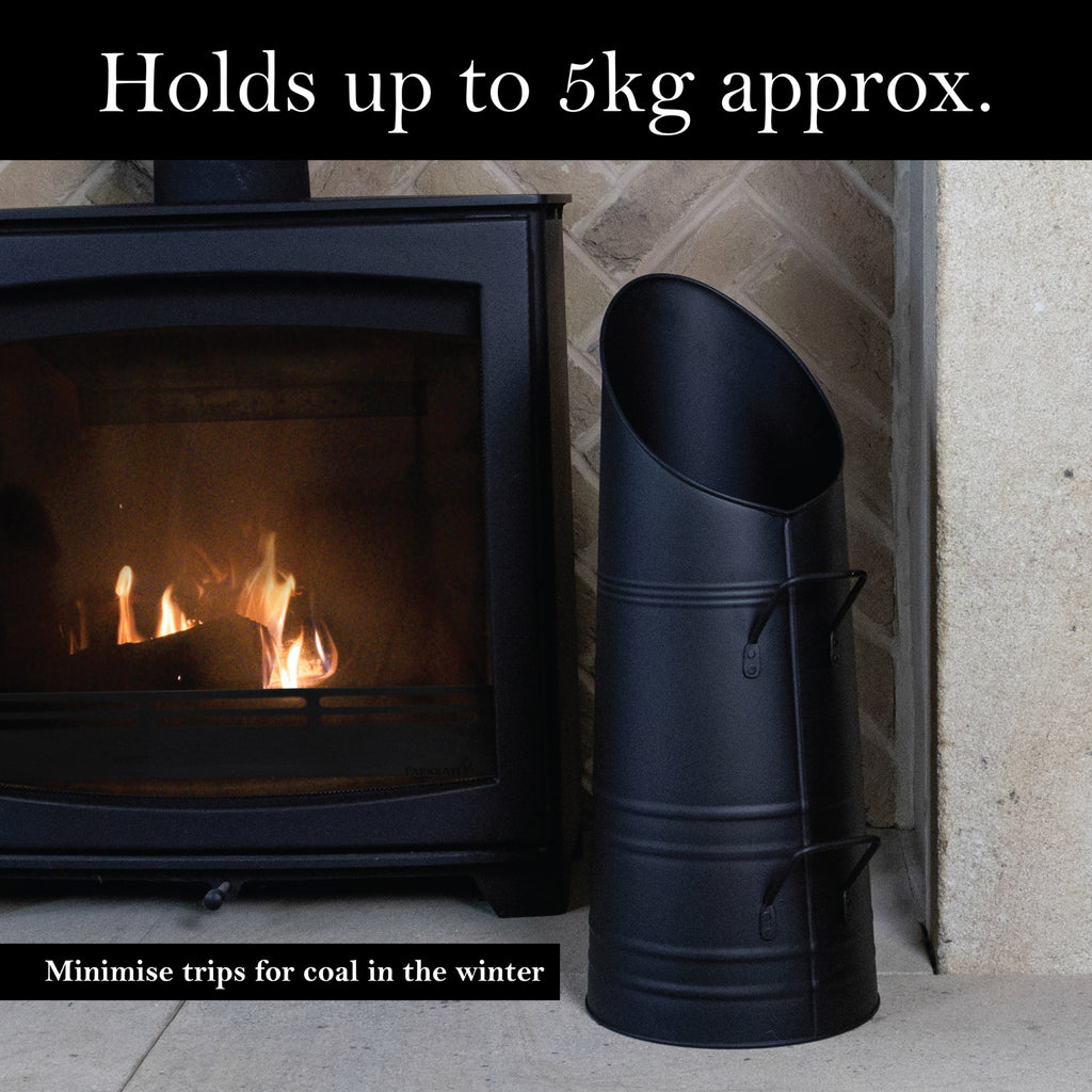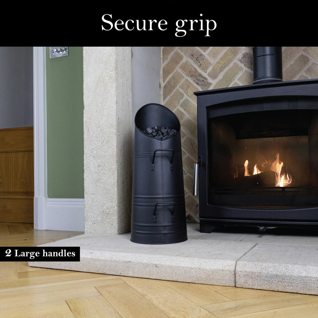 The fireplace is the heart of the home, that's why we have carefully selected a range of fireside furnishings matching function with style. This traditional 22-inch black coal hod has two side handles for carrying and a shaped lip to make refilling the fire as easy as possible. The Bowland Coal Hod is an ideal way to transport coal to the fireplace. Simple design with visible ridges to add a little depth to this classic, yet functional fireside accessory, made from steel with a black powder coating for a sleek finish.
