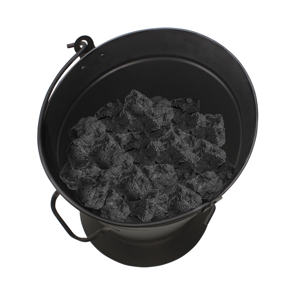Features two handles for ease of use, one for carrying and the other on the side that works with the shaped lip to make scooping the coal and refilling the fire as easy as possible