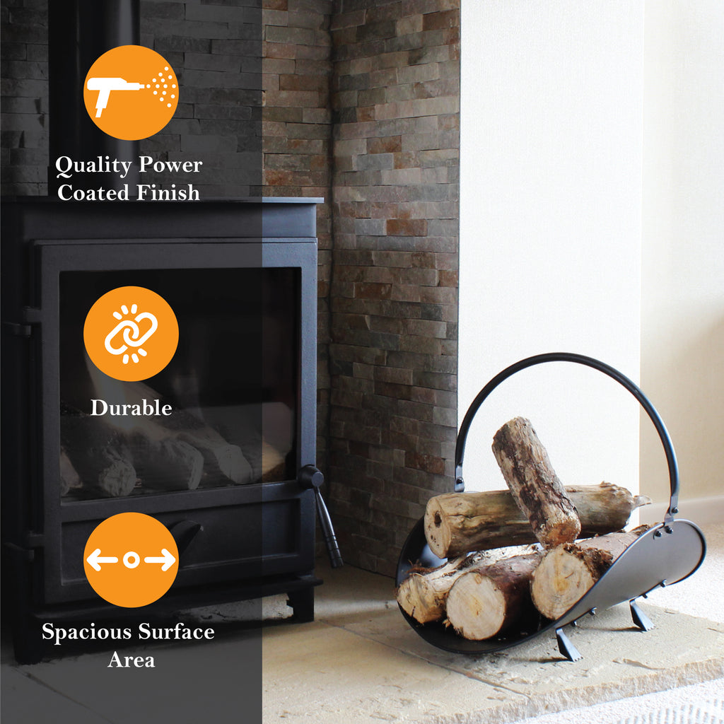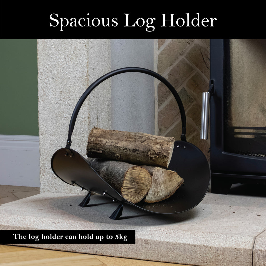 The fireplace is the heart of the home, that's why we have carefully selected a range of fireside furnishings matching function with style. The Mendip Log Holder is finished to a high standard, it's made from steel with a black powder coated finish and features a large integrated handle to make handling and transporting of logs easy. The modern curved holder looks great and can hold up to 5kg of logs while its compact feet provide added stability. This simple, classic design works with any setting, whether it be traditional or modern fireplace.