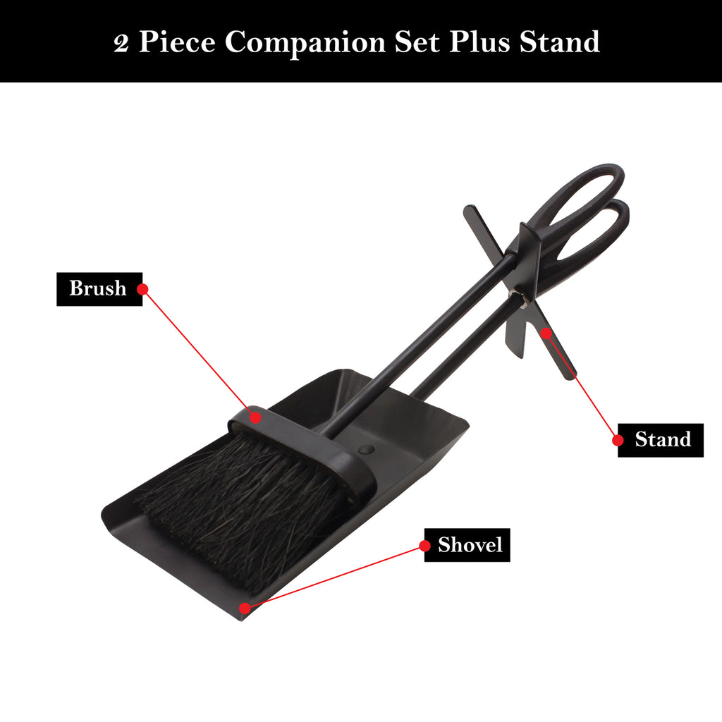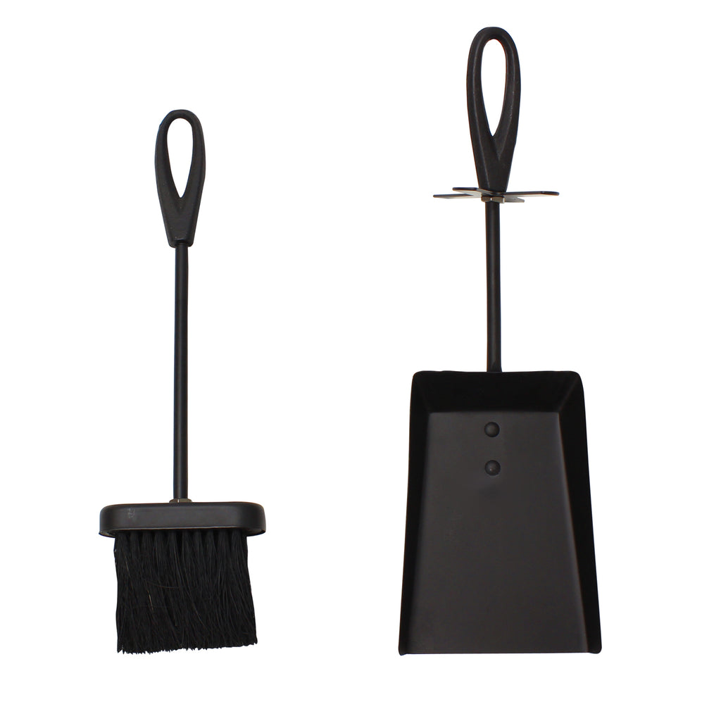 Two-piece set, includes the following fireplace tools: brush and shovel