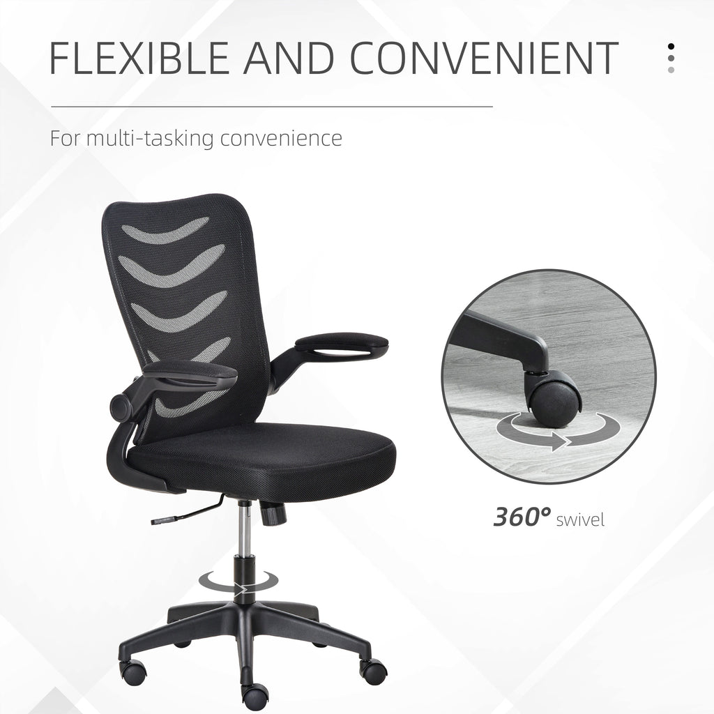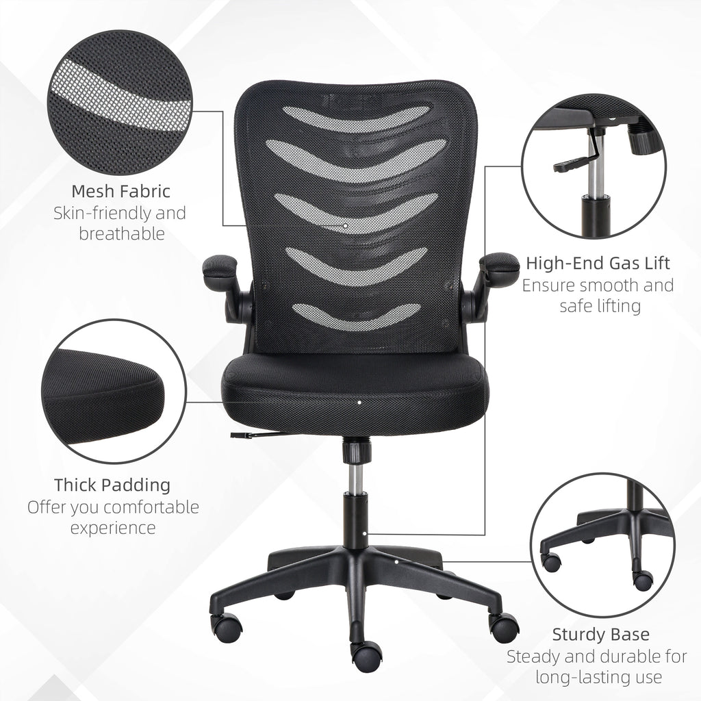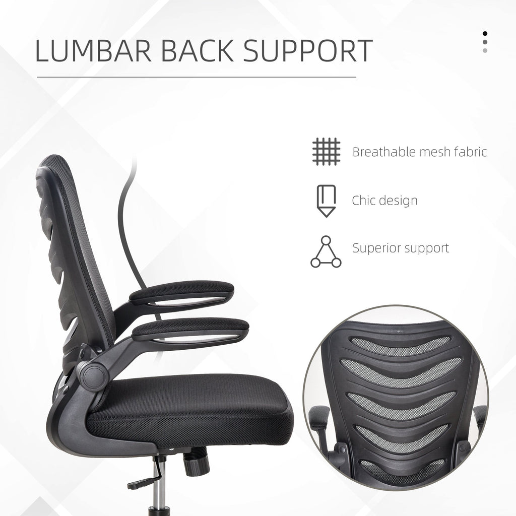 Vinsetto Mesh Office Chair for Home Swivel Task Desk Chair with Lumbar Back Support Flip-Up Arm Adjustable Height Black Computer w/