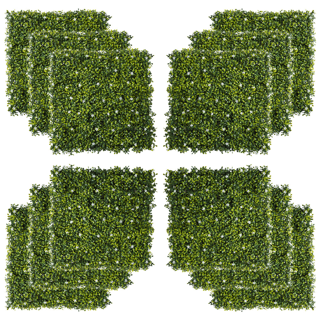 Outsunny 12PCS 50cm x 50cm Artificial Boxwood Panel Milan Grass with Flowers