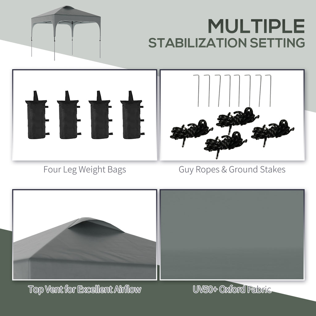 Outsunny Pop Up Gazebo Foldable w/ Wheeled Carry Bag & 4 Weight Bags, Grey