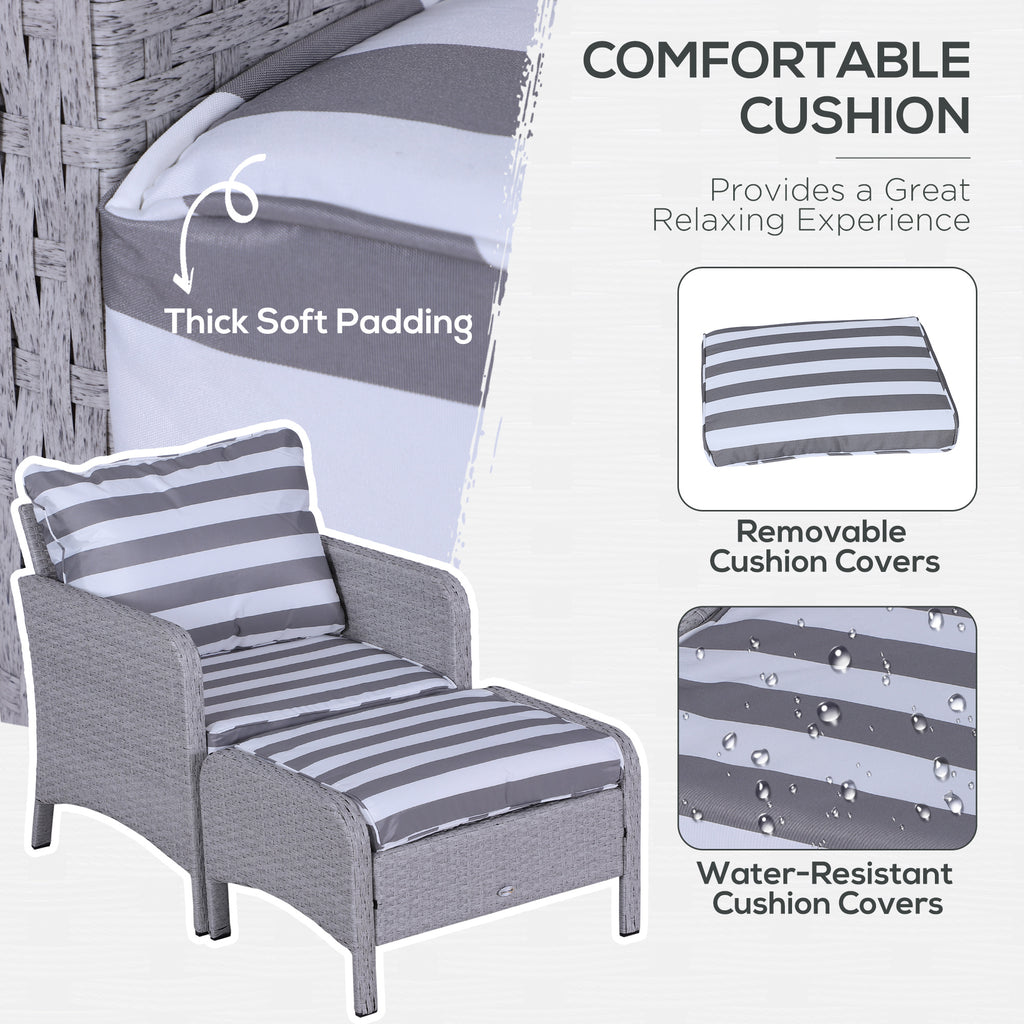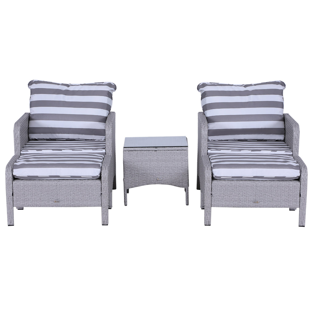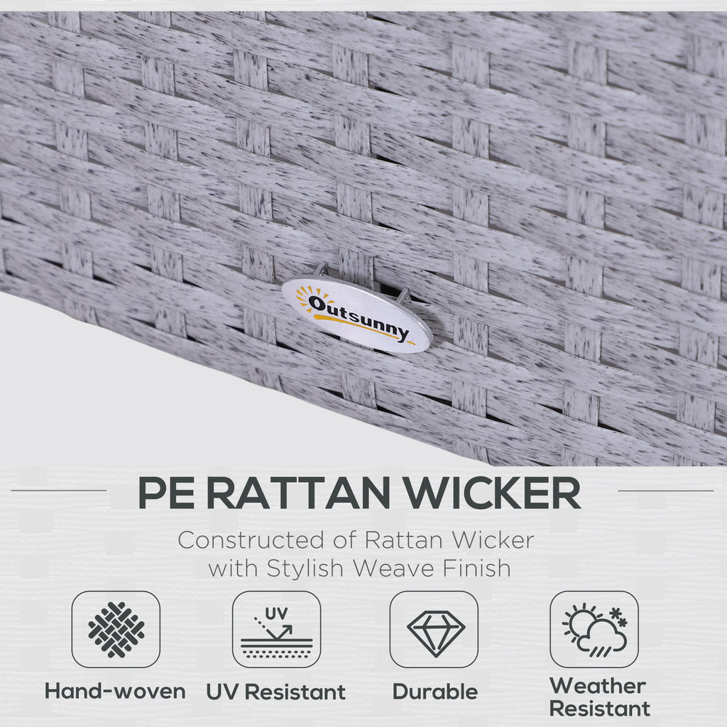 Sit back and relax in complete comfort with this 2 seater rattan sofa from Outsunny. Formed of five pieces, the set features two armchairs, two footstools and a matching coffee table. Made from hand woven PE rattan, each piece is weather resistant and low maintenance, with a steel frame underneath for extra support and stability. Two plush cushions on each chair ensure you’ll be relaxing comfortably for hours this garden sofa set is a fantastic combination, comfortable and minimal hassle.