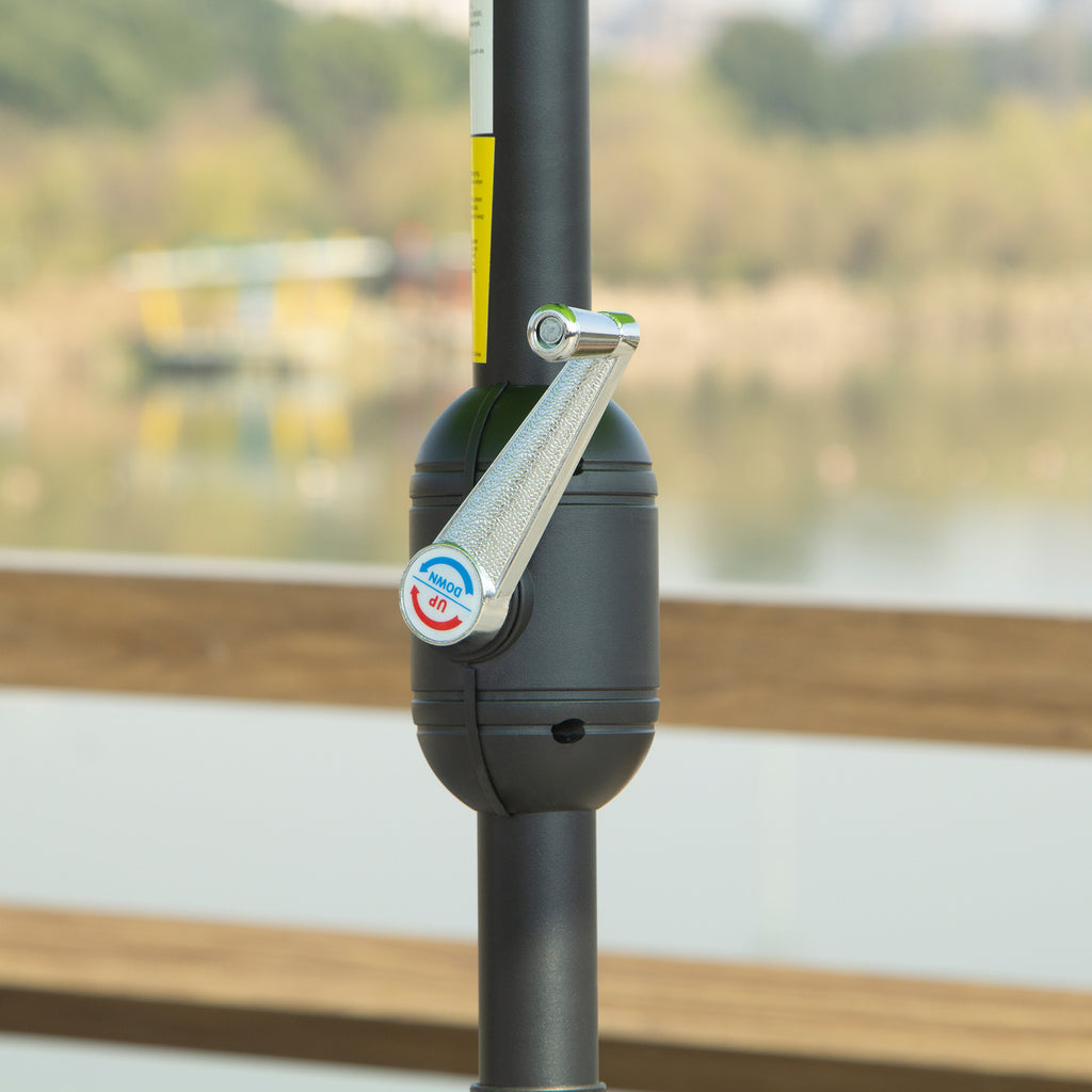 Summer shades the classic way - this Outsunny sun parasol. An aluminium frame makes the core structure strong, with 8 additional ribs connecting to the canopy for extra support. The ?2.65m canopy protects you from direct sunlight and light showers - the outdoor parasol's large size creates cover for you and five other guests. The canopy can be easily tilted to keep you protected in different ways. And to complete, pair with an Outsunny base, heavier than 25kg.