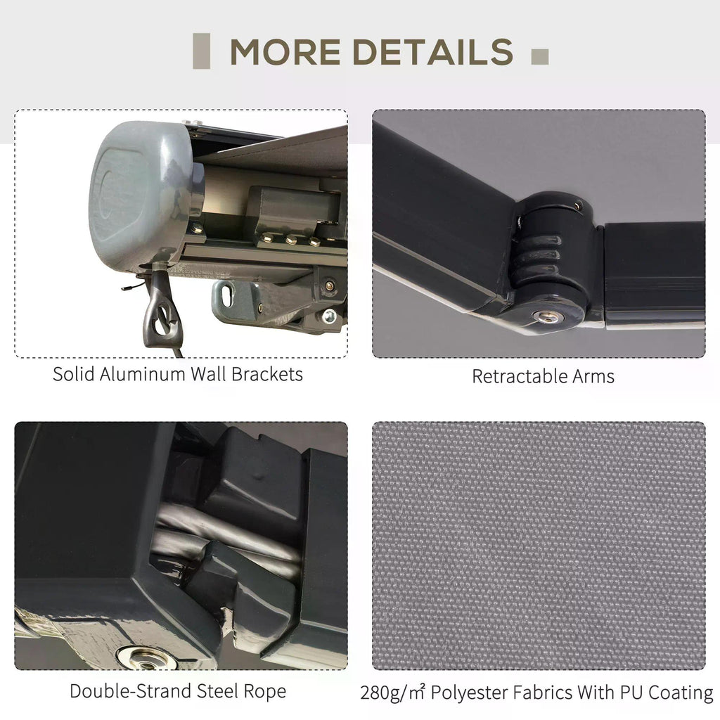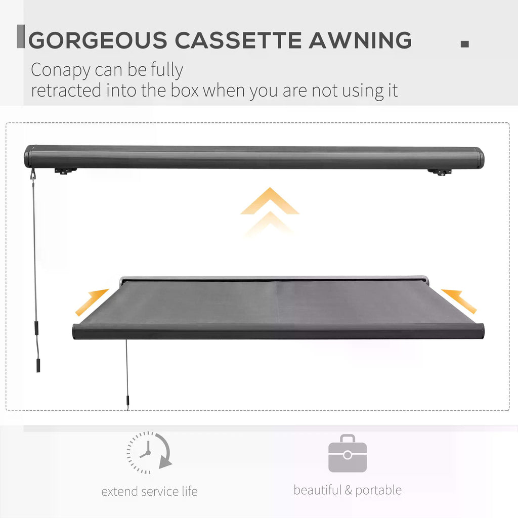 Create shade over your doorways and windows at the touch of a remote - grab this electric awning from Outsunny. Using an aluminium and steel blend frame, the main structure is solid and tough, making it suitable for outdoor use. The thick 280g/m² canopy is coated with PVC on the top for protection against UV and sun glare without fading the colour: it will keeping looking beautifully new throughout the seasons. Handle for manual operation included. Fixes to cement walls, remote control included.