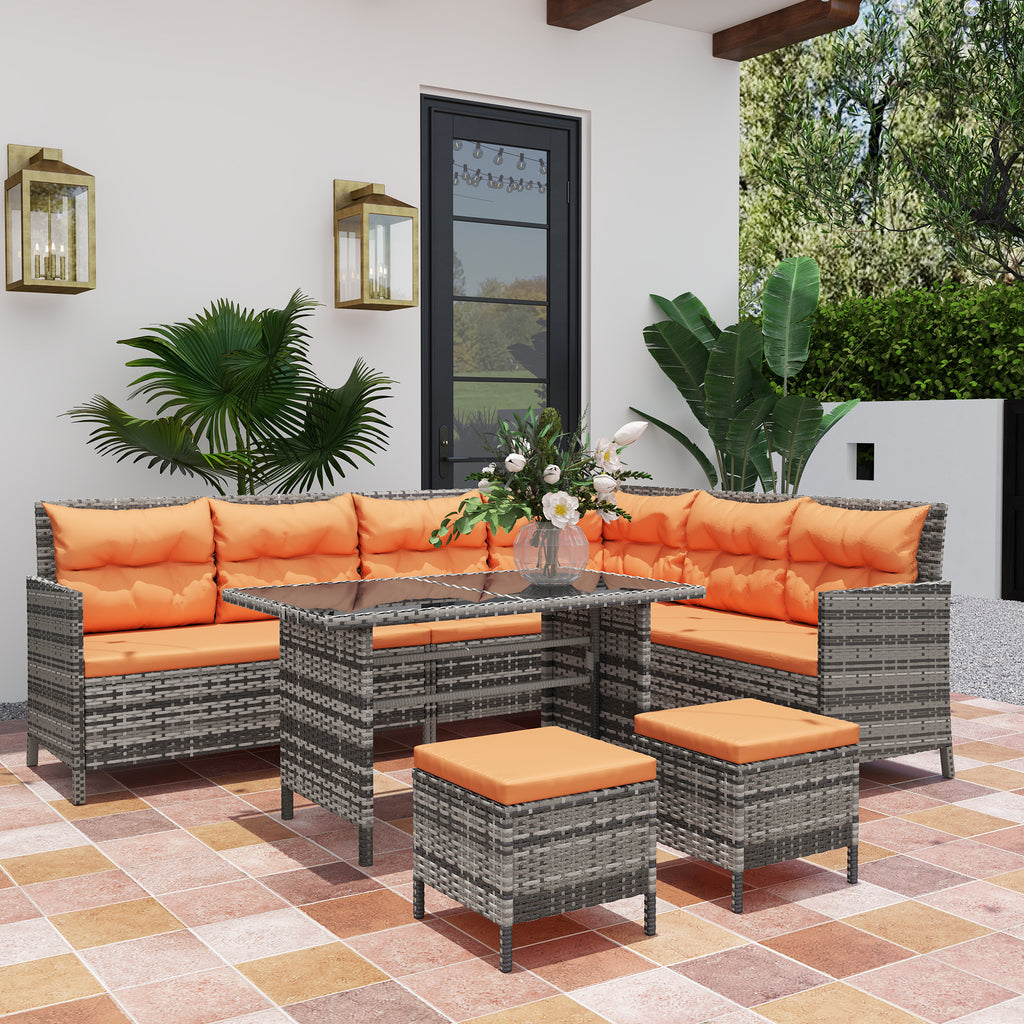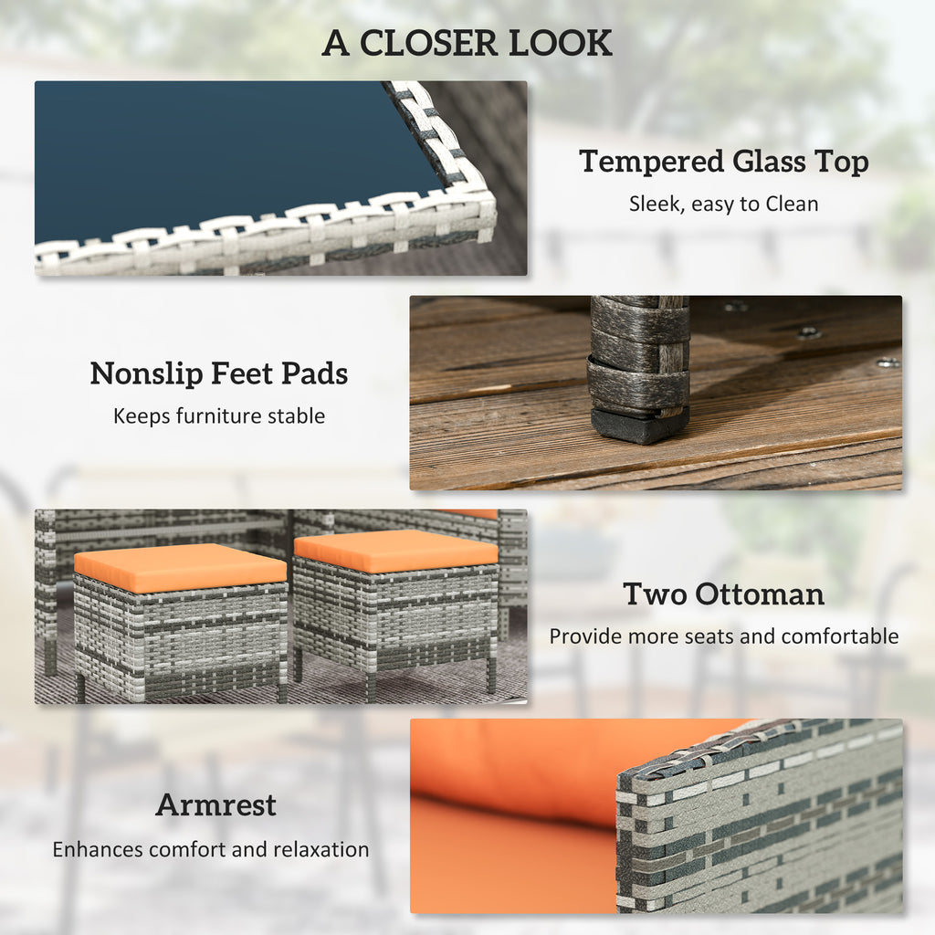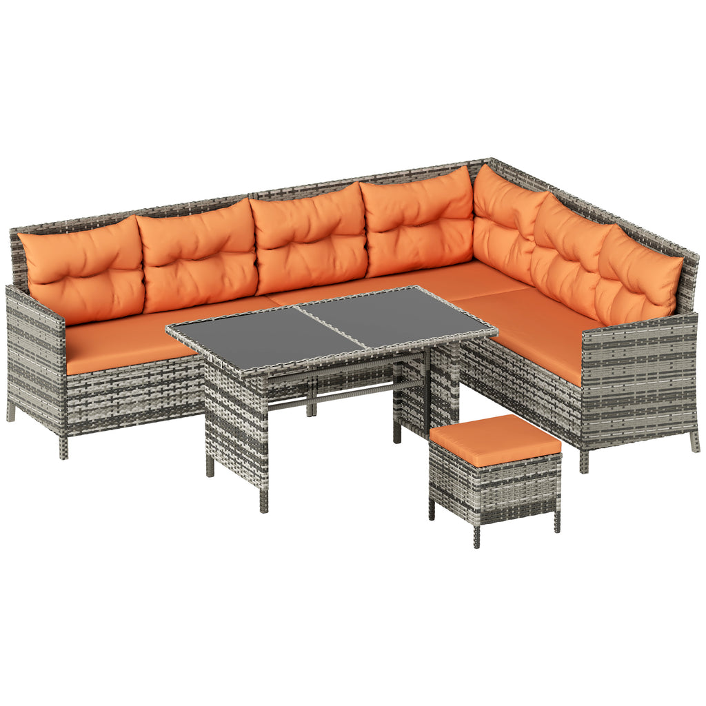 Bring some serious style into your outdoors with this outdoor corner sofa set from Outsunny. The conservatory furniture comes with two two-seater sofas, a corner chair, two footstools and a double table. The rust-resistant metal frame ensures a tough and strong core, with UV and fade resistant PE rattan wrapped around, offering double the protection and durability. The garden furniture sets are finished with sleek cream cushions all over, making this set great to have in your space too.