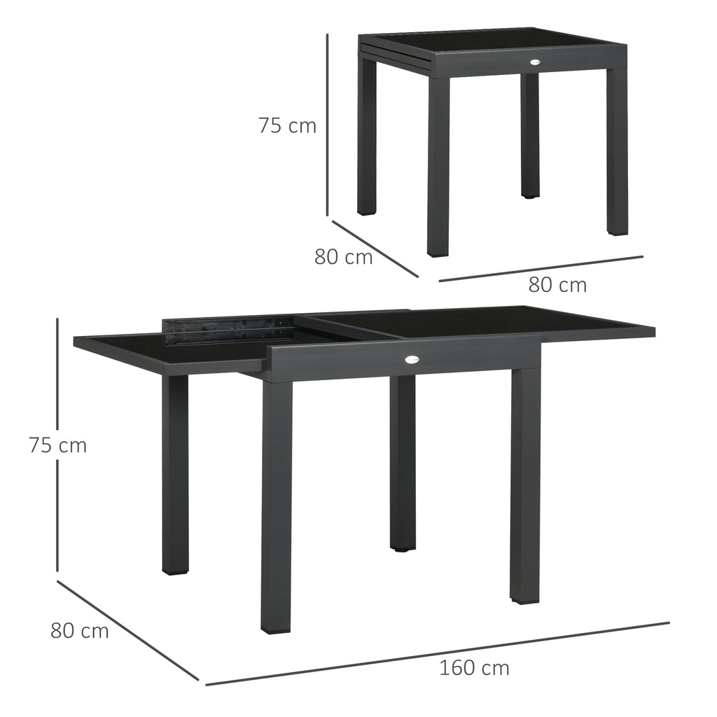 Outsunny Extendable Outdoor Dining Table Patio Table with Aluminium Frame Black