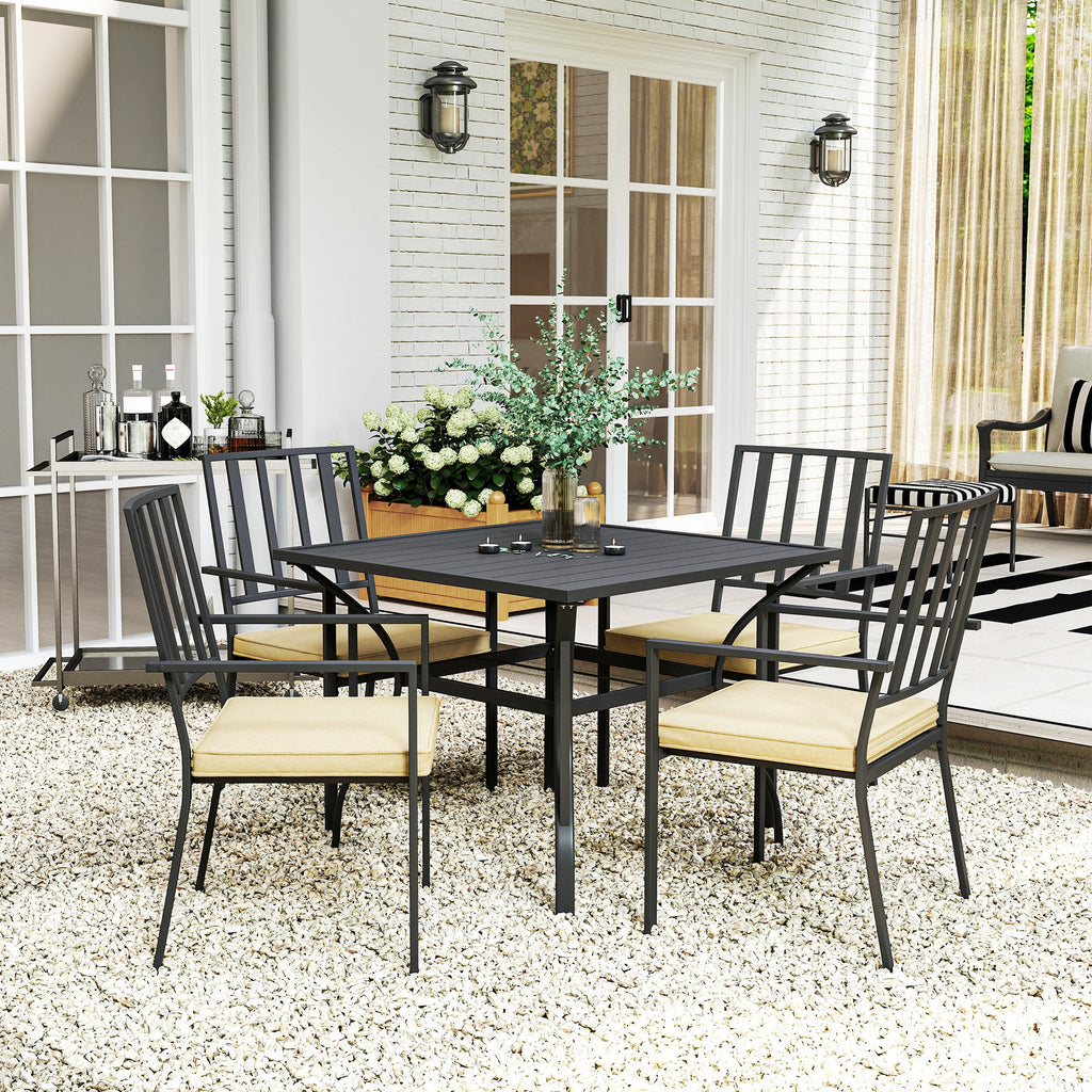 • Outdoor dining set comes with a metal dining table and four armchairs