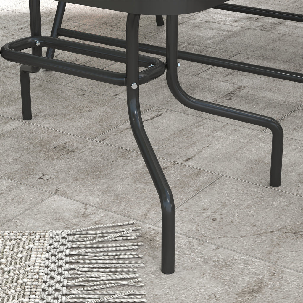 This outdoor furniture set from Outsunny is a four piece of decor in any corner of any room in your home. Made of a steel frame and wrapped breathable mesh fabric ensures lasting durability. The table has tempered glass for stable refreshment placement and the thick padded cushions and backrests offer optimal comfort. The Outsunny 4 piece garden furniture set is essential for any garden or patio setting to complete a look in comfort and style.
