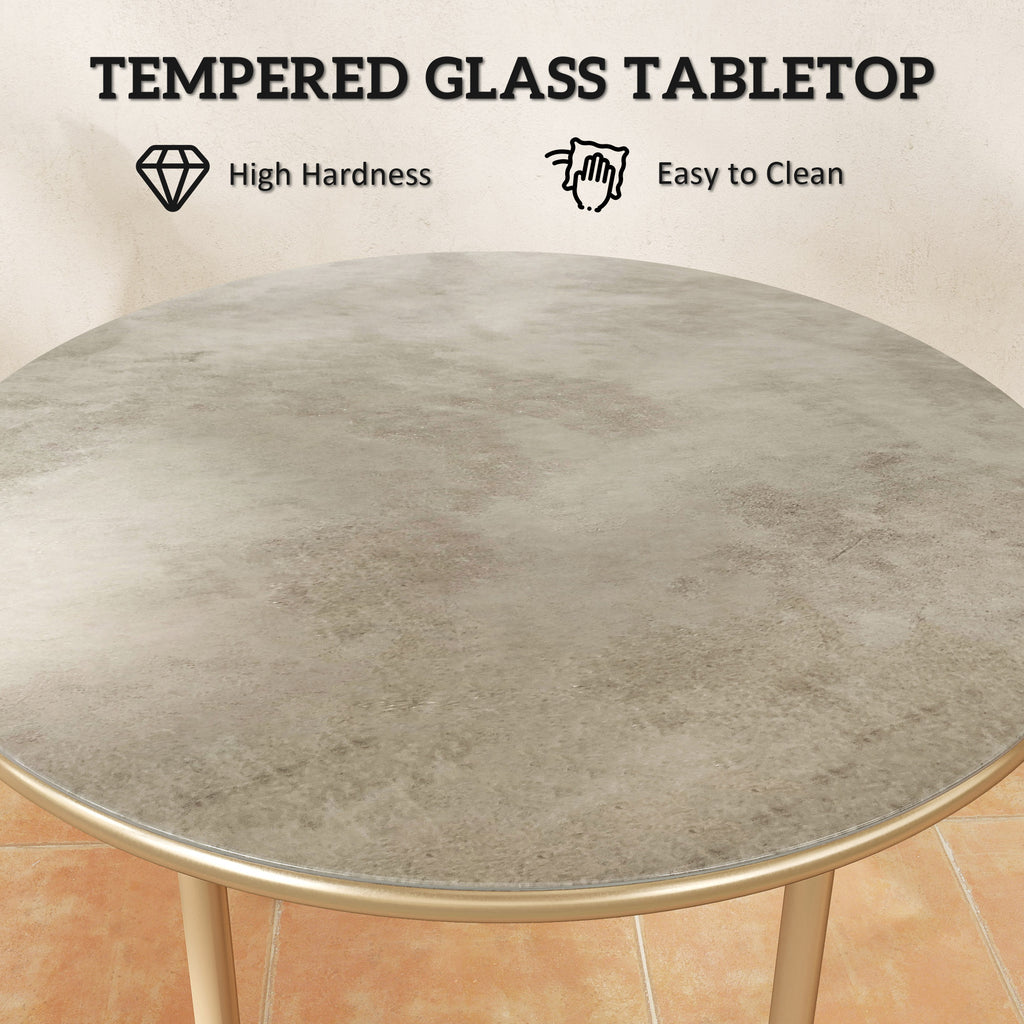 Outsunny Round Small Garden Table with Faux Marble Glass Top, Beige