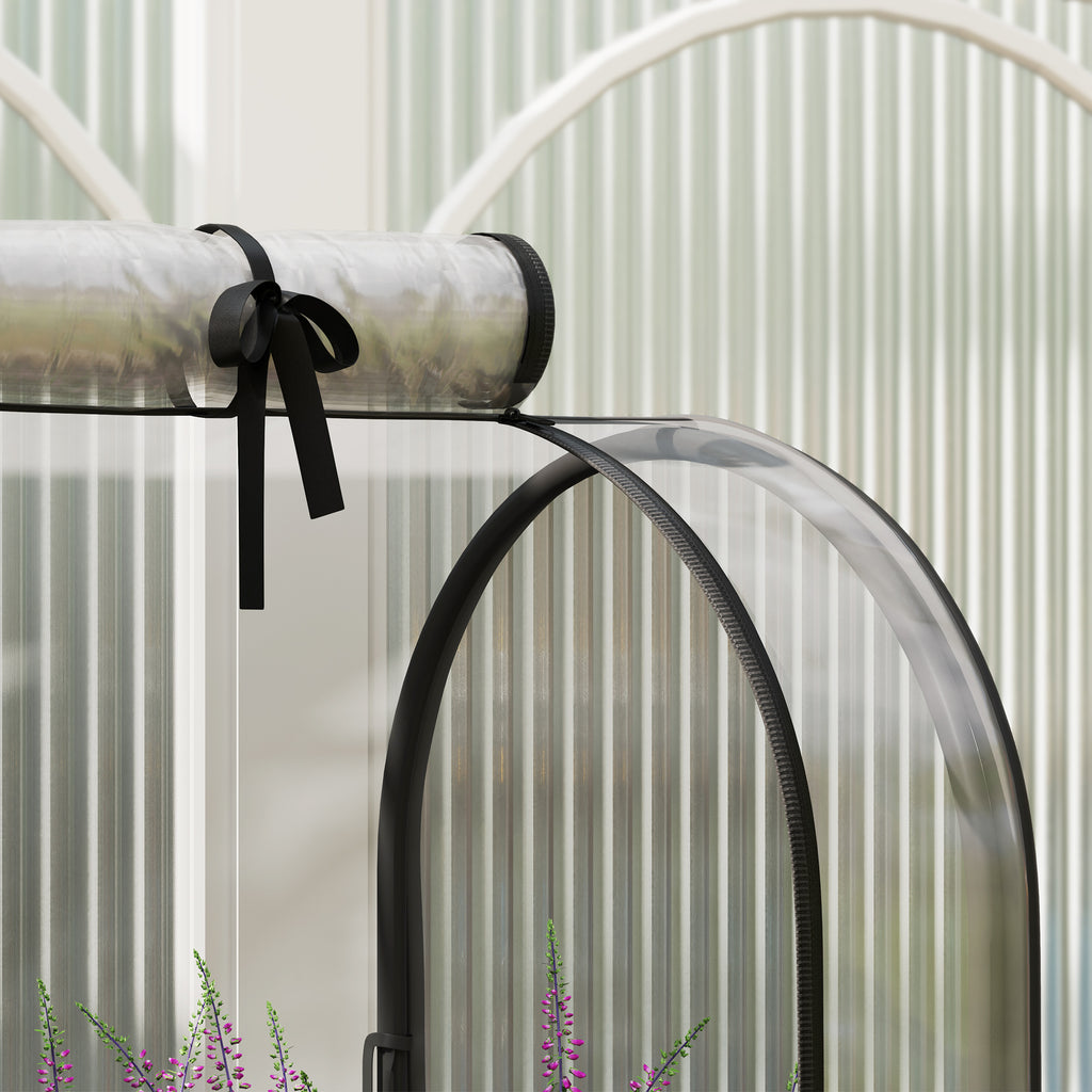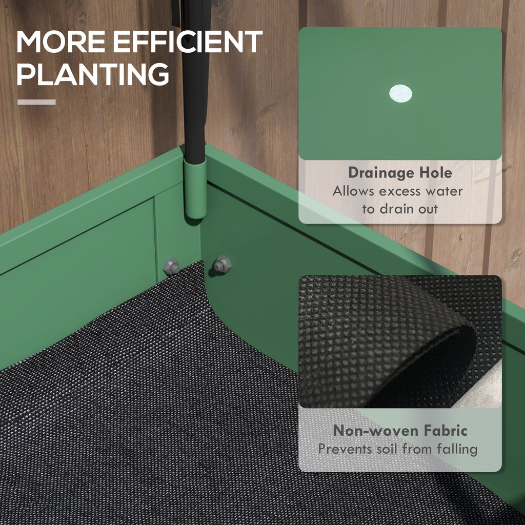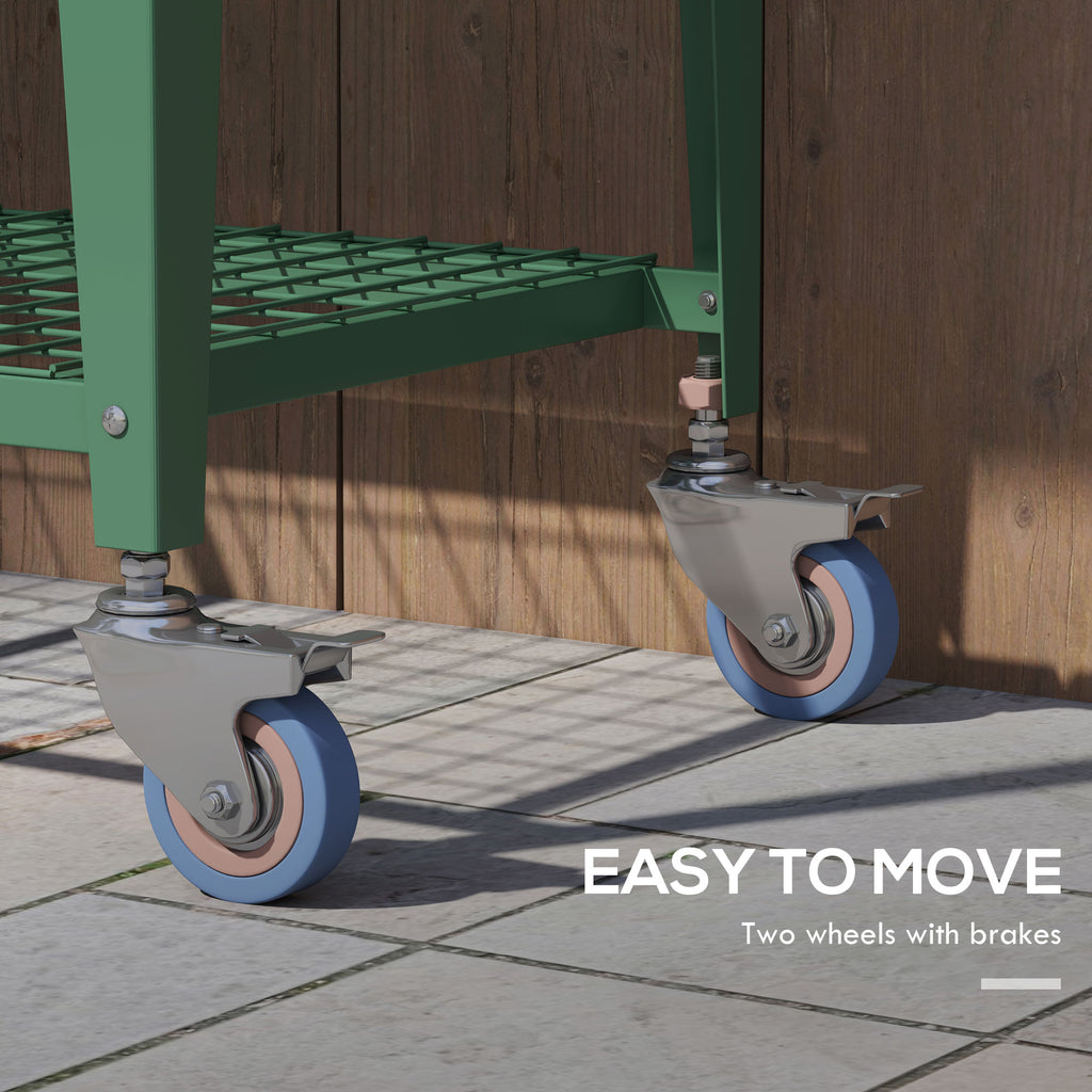 This Outsunny raised planter offers a place for many plants, vegetables and others. A steel raised planter, fitted with a plastic cover for a safe shield. Features a bottom shelf for handy holding room. The bed liner holds all soil together, with drainage hole to allow water to drain gently. Complete with two wheels with brake. • Cover keeps inside warm and protects from mild rain. Roll-up door for easy access