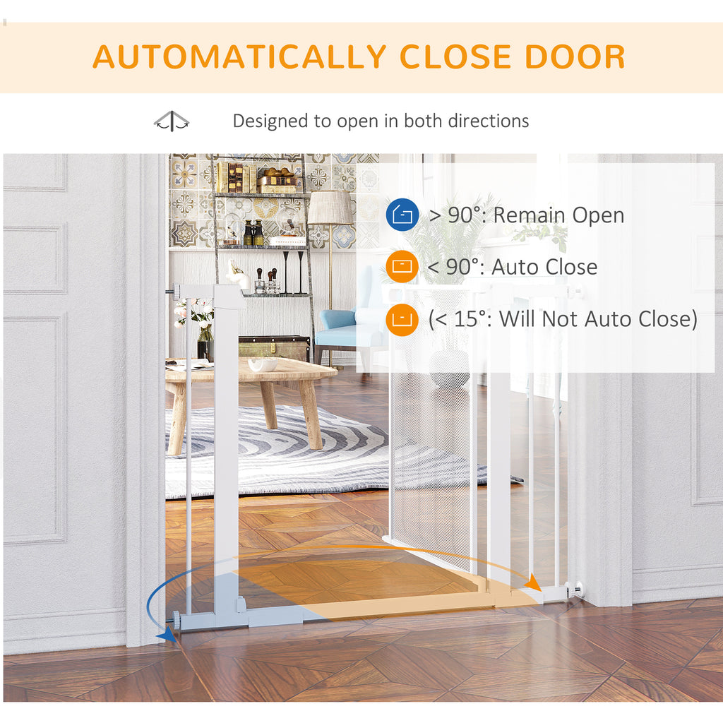 Keep dogs from restricted areas with this PawHut pressure fit stair gate. Suitable for hallways, doorways and staircases, it has an adjustable width of 75-103cm – perfect for different sized openings. This pet gate automatically closes if it's open at less than 90° – no more worrying about leaving it slightly open. It's pressure-mounted, making it easy to set up; a safe and effective way to stop pets from going where they shouldn't.