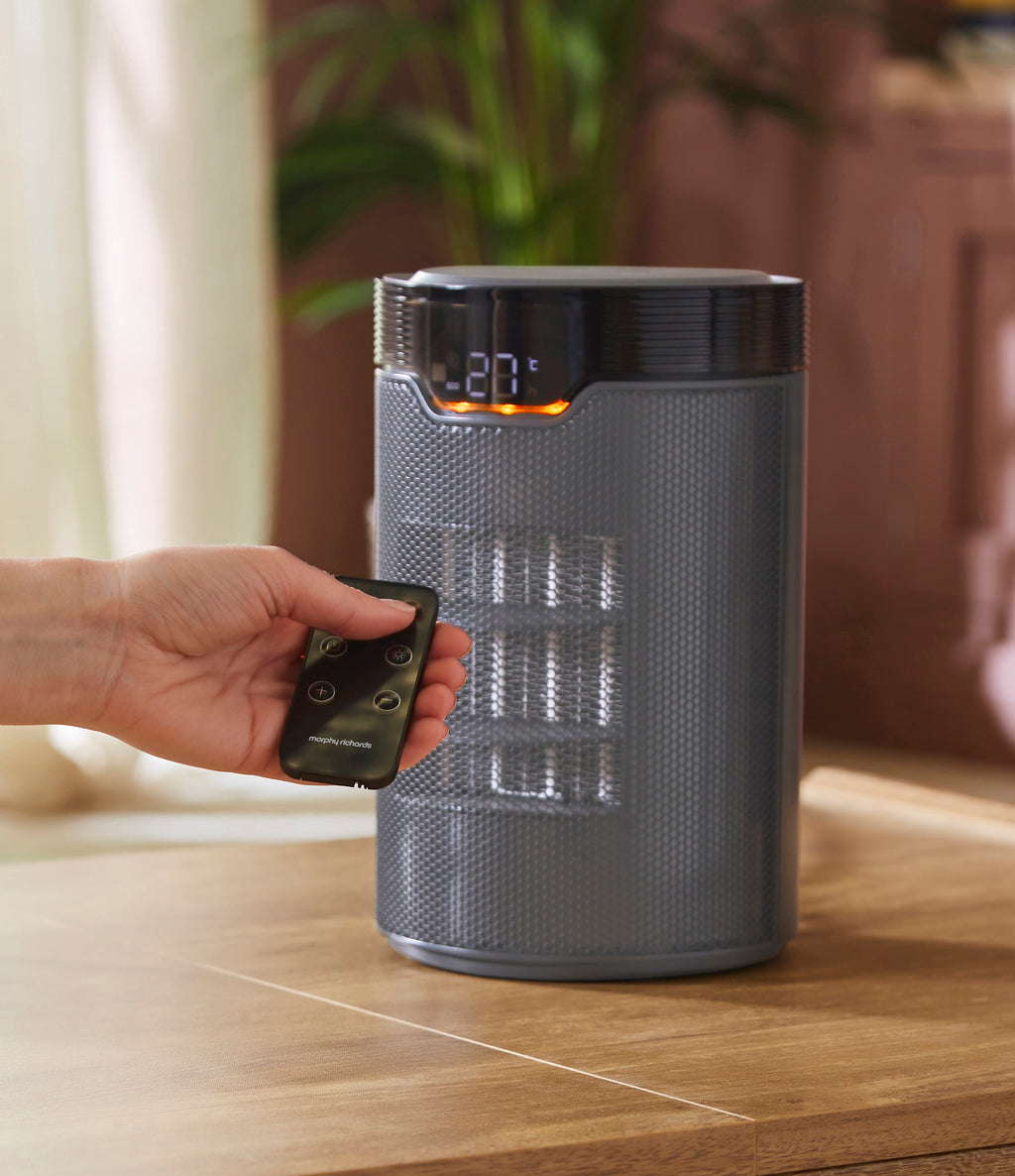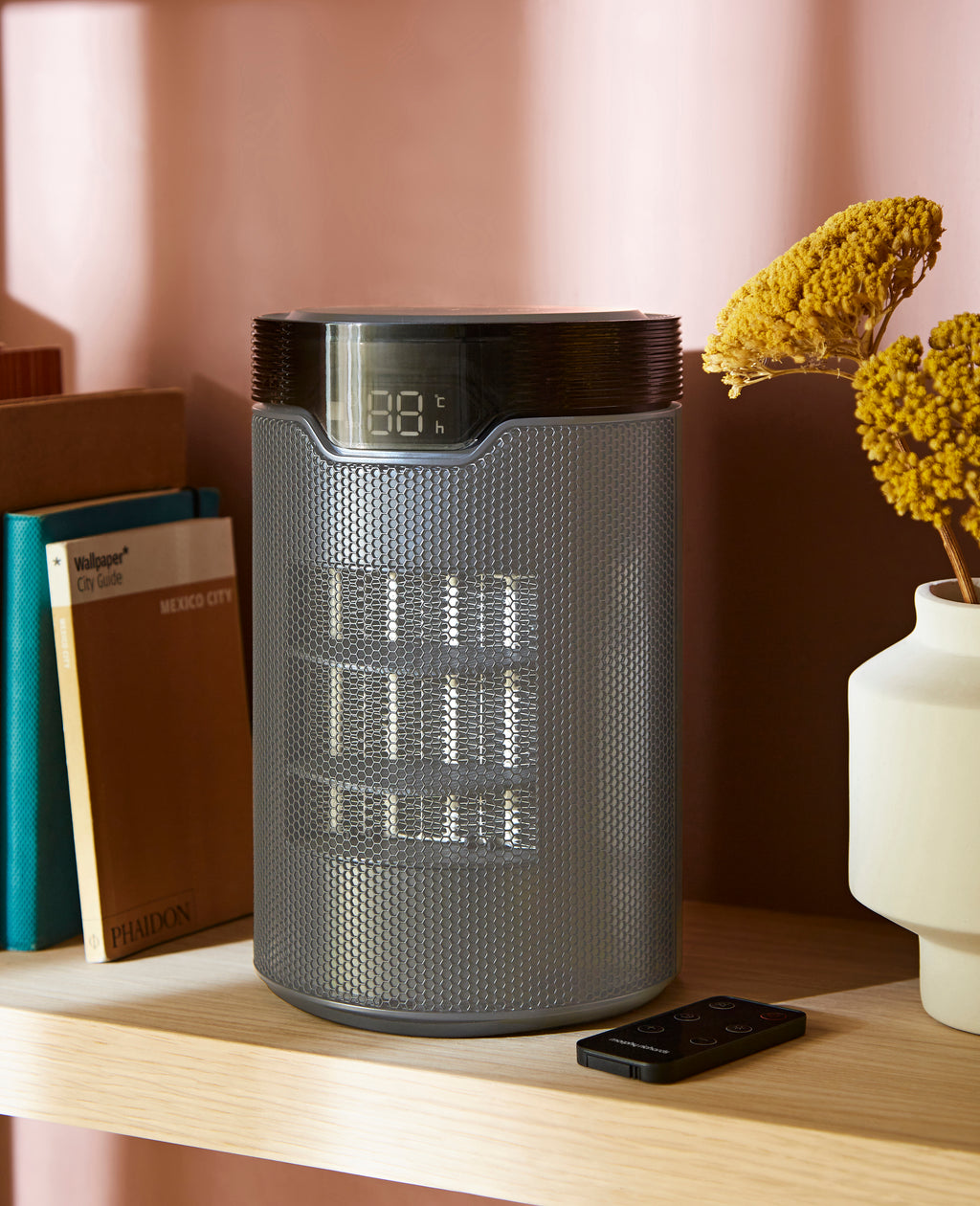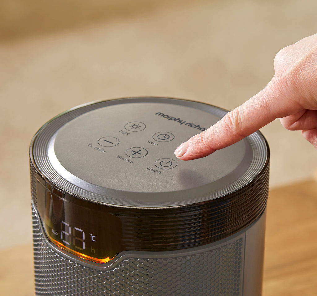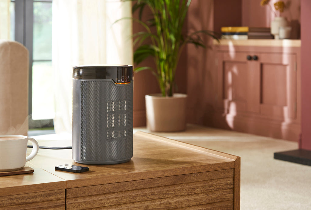 Warm up your space with our HeatFlux 1.5kw Bedside Ceramic Fan Heater with Remote Control, a compact and powerful heating solution designed to take the cold chill out of the air. The three temperature settings can be easily adjusted, while the eco mode is designed to automatically adjust power usage to maintain your desired temperature and reduce energy consumption. The touch screen, remote control and timer setting promise effortless operation combined with unbeatable performance while the lightweight design and built-in handle provide easy transport from room to room. Whether it's at home or in the office, this table top fan that not only showcases a sleek design, but also delivers the answer to simple heating.