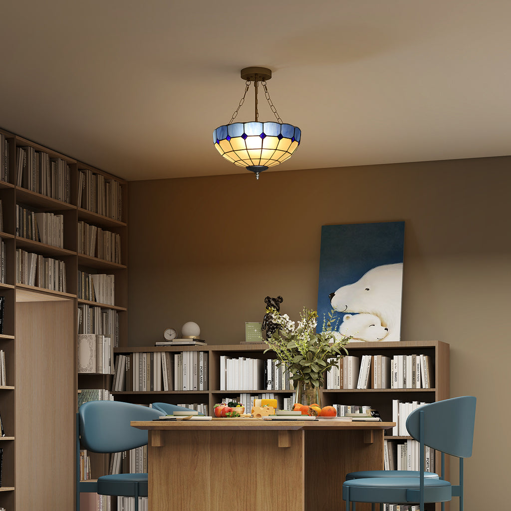 Step back in time with the HOMCOM Ceiling Light, blending the nostalgic allure of a Tiffany-style stained glass shade that bathes your space in a warm, vintage glow. Featuring three E27 bulb sockets, the chandelier ensures your room is illuminated evenly with a welcoming ambiance. Its robust metal and glass construction with an antique finish adds timeless elegance to any decor.