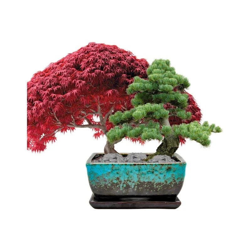 Two unique bonsai species – Pine and Sweet Gum for a beautiful contrast