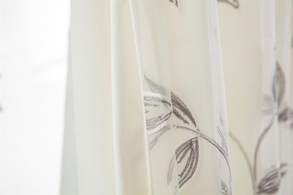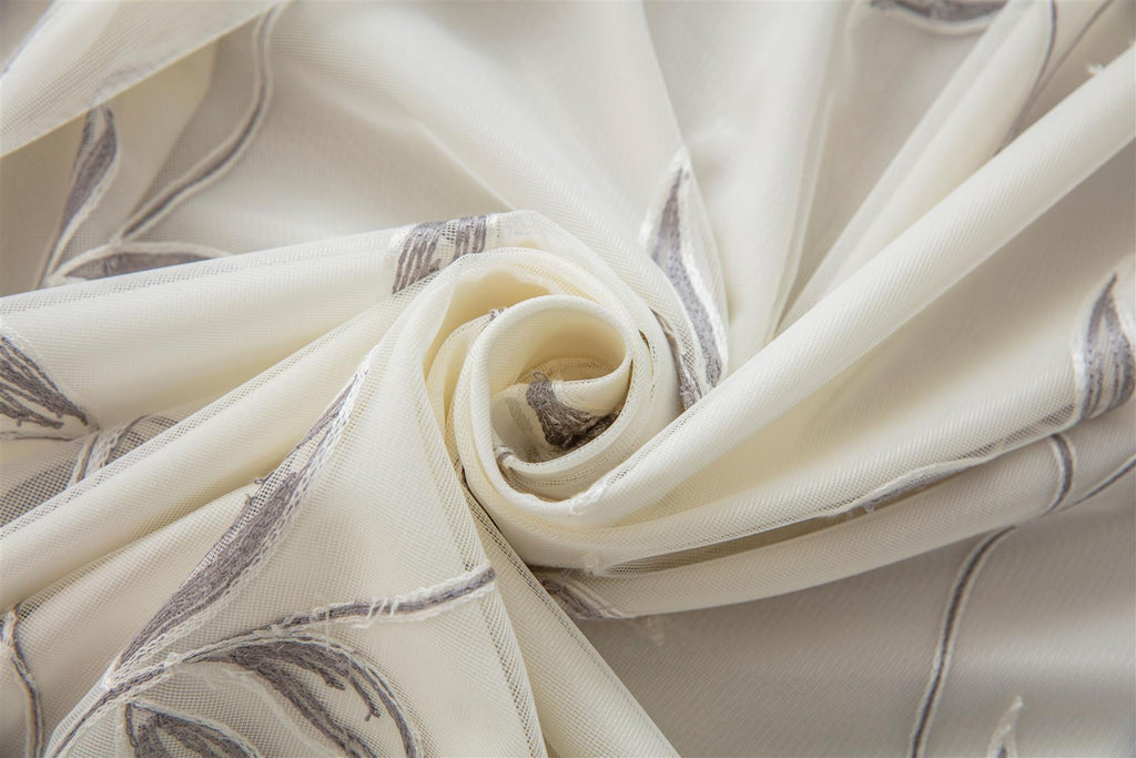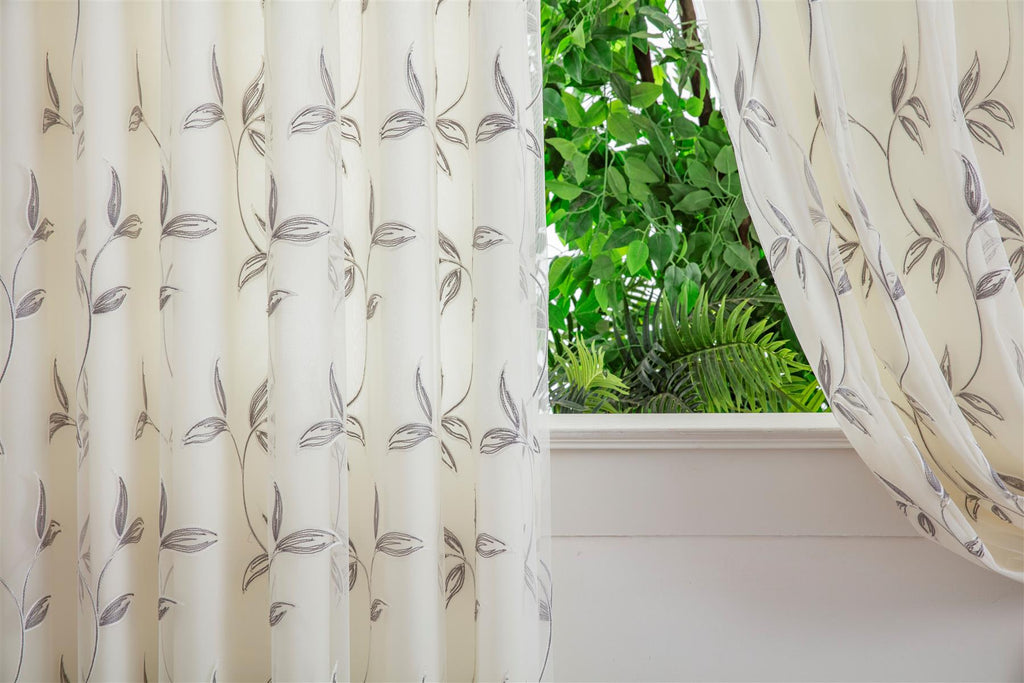 Transform Your Space with Voile Curtains: Elegance and Sophistication. Discover the perfect blend of luxury and charm with our Leaf Embroidered Voile Curtains. These exquisite curtains are designed to elevate any room, adding a touch of sophistication and beauty that will leave a lasting impression. Richly Embroidered Design: Our curtains feature intricate leaf embroidery, bringing the beauty of nature indoors. The delicate patterns are meticulously crafted to create a stunning visual effect that enhances any decor. Premium Tulle Voile Fabric: Made from high-quality tulle voile, these curtains offer a light and airy feel while providing the privacy you need. The sheer fabric allows natural light to filter through, creating a warm and inviting ambiance. Full Lining for Added Comfort: Each curtain is fully lined to ensure durability and longevity. The lining also provides an extra layer of insulation, helping to maintain a comfortable temperature in your home throughout the year. Elegant Pencil Pleat Heading: Our curtains are designed with a sophisticated pencil pleat heading, adding a classic and tailored look to your windows. This style ensures a neat and even drape, making your curtains a focal point of any room. Versatile Elegance: Whether you're decorating your living room, bedroom, or dining area, these voile curtains are the perfect addition. Their timeless design and neutral tones complement a wide range of interior styles, from modern minimalism to classic sophistication. Enhance Your Home Today. Imagine the soft, natural light cascading through the leaf-embroidered voile, casting a serene glow across your room. Picture the compliments from guests as they admire the rich detailing and luxurious feel of your new curtains. With our Leaf Embroidered Voile Curtains, transforming your space into a haven of elegance has never been easier. Don't miss out on the opportunity to add a touch of refinement to your home. Order your set of voile curtains today and experience the perfect combination of beauty, quality, and convenience. Order Now and Elevate Your Space!