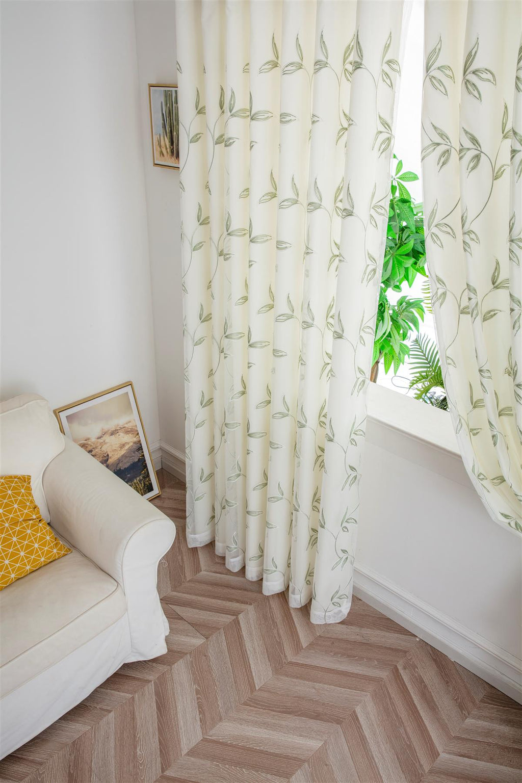 Transform Your Space with Voile Curtains: Elegance and Sophistication. Discover the perfect blend of luxury and charm with our Leaf Embroidered Voile Curtains. These exquisite curtains are designed to elevate any room, adding a touch of sophistication and beauty that will leave a lasting impression. Richly Embroidered Design: Our curtains feature intricate leaf embroidery, bringing the beauty of nature indoors. The delicate patterns are meticulously crafted to create a stunning visual effect that enhances any decor. Premium Tulle Voile Fabric: Made from high-quality tulle voile, these curtains offer a light and airy feel while providing the privacy you need. The sheer fabric allows natural light to filter through, creating a warm and inviting ambiance. Full Lining for Added Comfort: Each curtain is fully lined to ensure durability and longevity. The lining also provides an extra layer of insulation, helping to maintain a comfortable temperature in your home throughout the year. Elegant Pencil Pleat Heading: Our curtains are designed with a sophisticated pencil pleat heading, adding a classic and tailored look to your windows. This style ensures a neat and even drape, making your curtains a focal point of any room. Versatile Elegance: Whether you're decorating your living room, bedroom, or dining area, these voile curtains are the perfect addition. Their timeless design and neutral tones complement a wide range of interior styles, from modern minimalism to classic sophistication. Enhance Your Home Today. Imagine the soft, natural light cascading through the leaf-embroidered voile, casting a serene glow across your room. Picture the compliments from guests as they admire the rich detailing and luxurious feel of your new curtains. With our Leaf Embroidered Voile Curtains, transforming your space into a haven of elegance has never been easier. Don't miss out on the opportunity to add a touch of refinement to your home. Order your set of voile curtains today and experience the perfect combination of beauty, quality, and convenience. Order Now and Elevate Your Space!